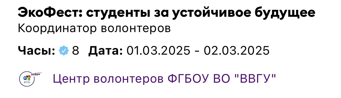 ЭкоФест: студенты за устойчивое будущее | Городской, краевой | 01.03.2025 - 02.03.2025 | Координатор волонтеров |