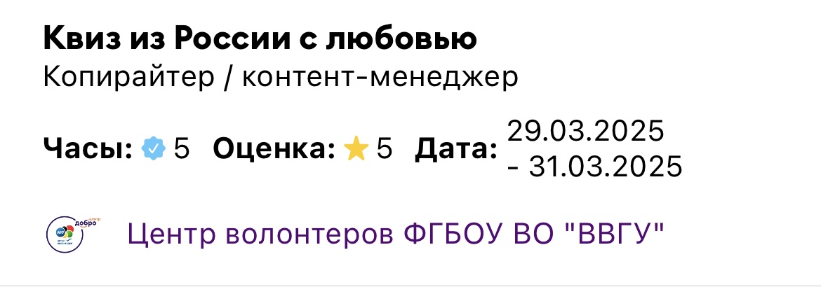 Квиз из России с любовью | Внутривузовский | 29.03.2025 - 31.03.2025 | Копирайтер/контент-менеджер |