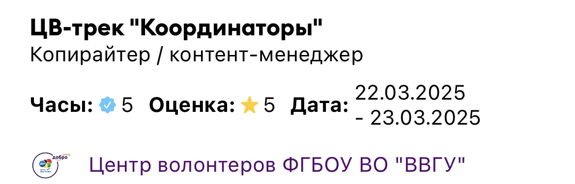 ЦВ- трек «Координаторы» | Городской, краевой | 22.03.2025 - 23.03.2025 | Копирайтер/ контент-менеджер |