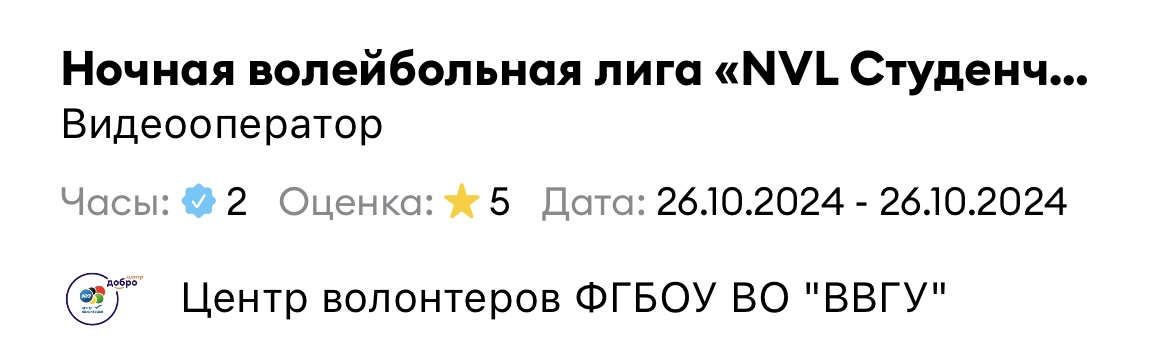 Ночная волейбольная лига “NVL Студенческая лига | Городской, краевой | 26.10.2024 | Видеооператор |