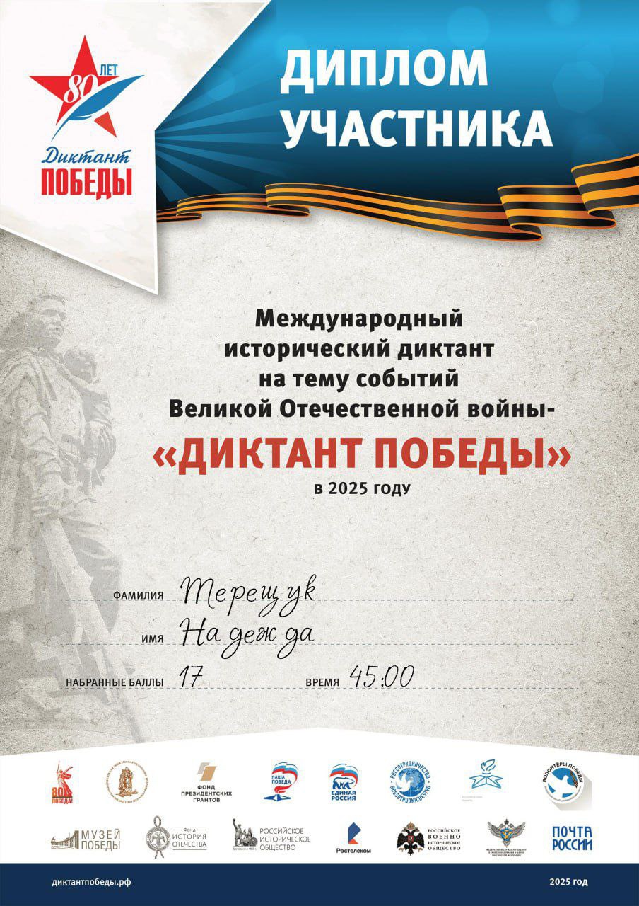 "Диктант Победы" | Международный | 25.04.2025 | Участник |