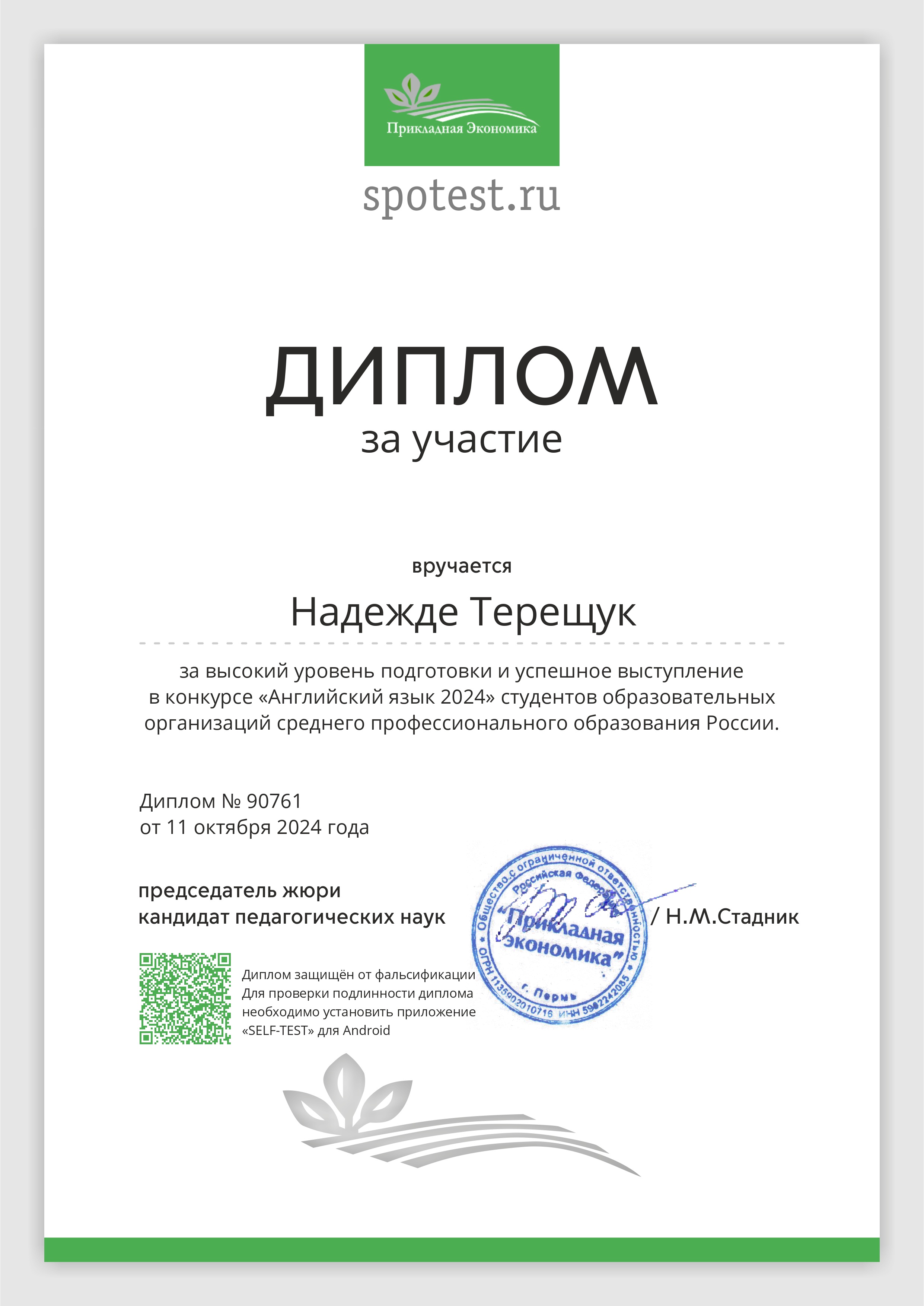 Конкурс "Английский язык 2024" | Всероссийский | 11.10.2024 - 11.10.2024 | Участник |