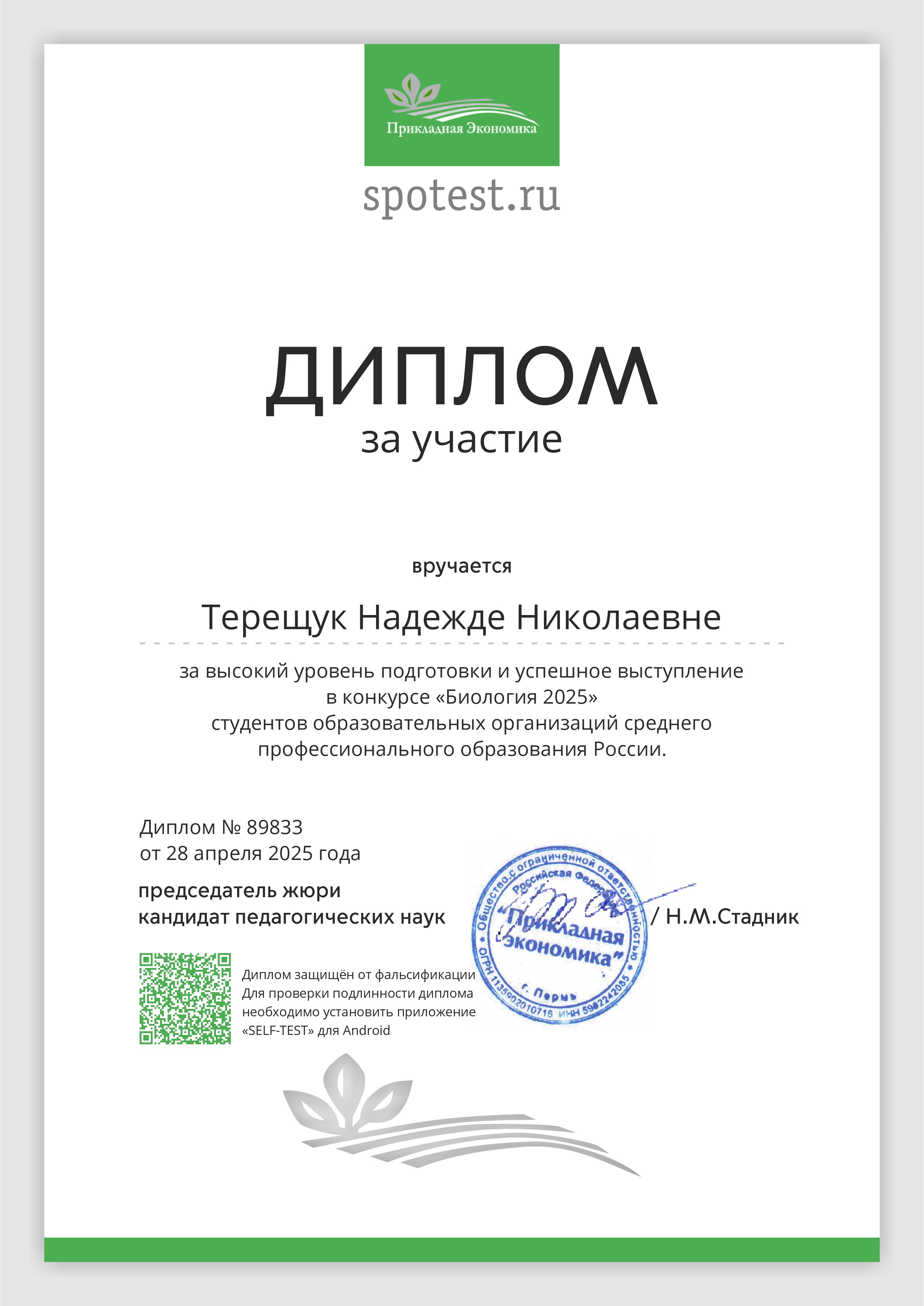 Конкурс "Биология 2025" | Всероссийский | 28.04.2025 | Участник |