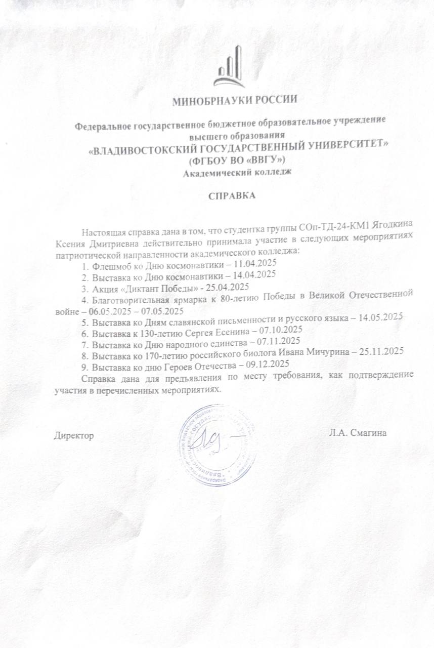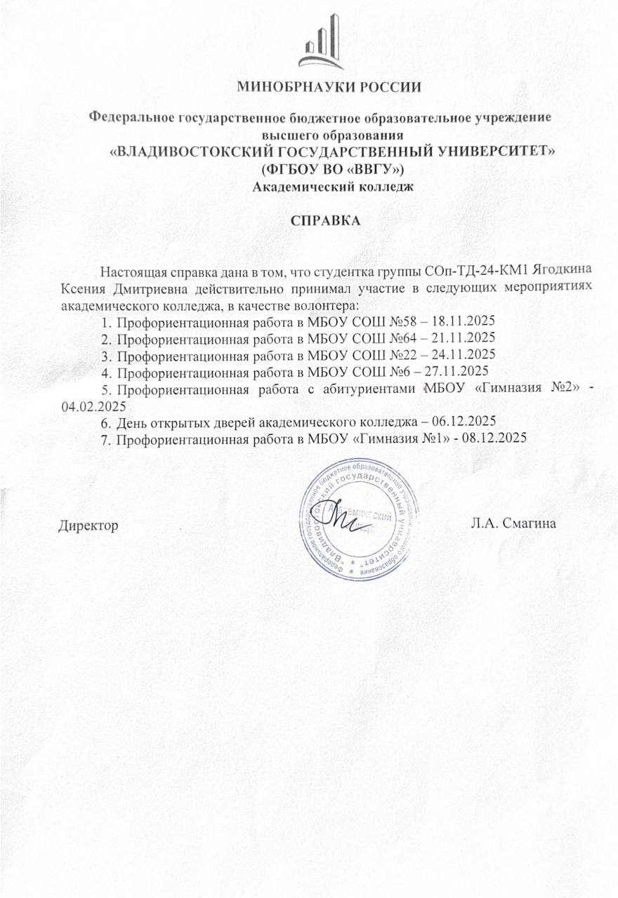 День открытых дверей академического колледжа Внутривузовский 06.12.2025 Участник Справка