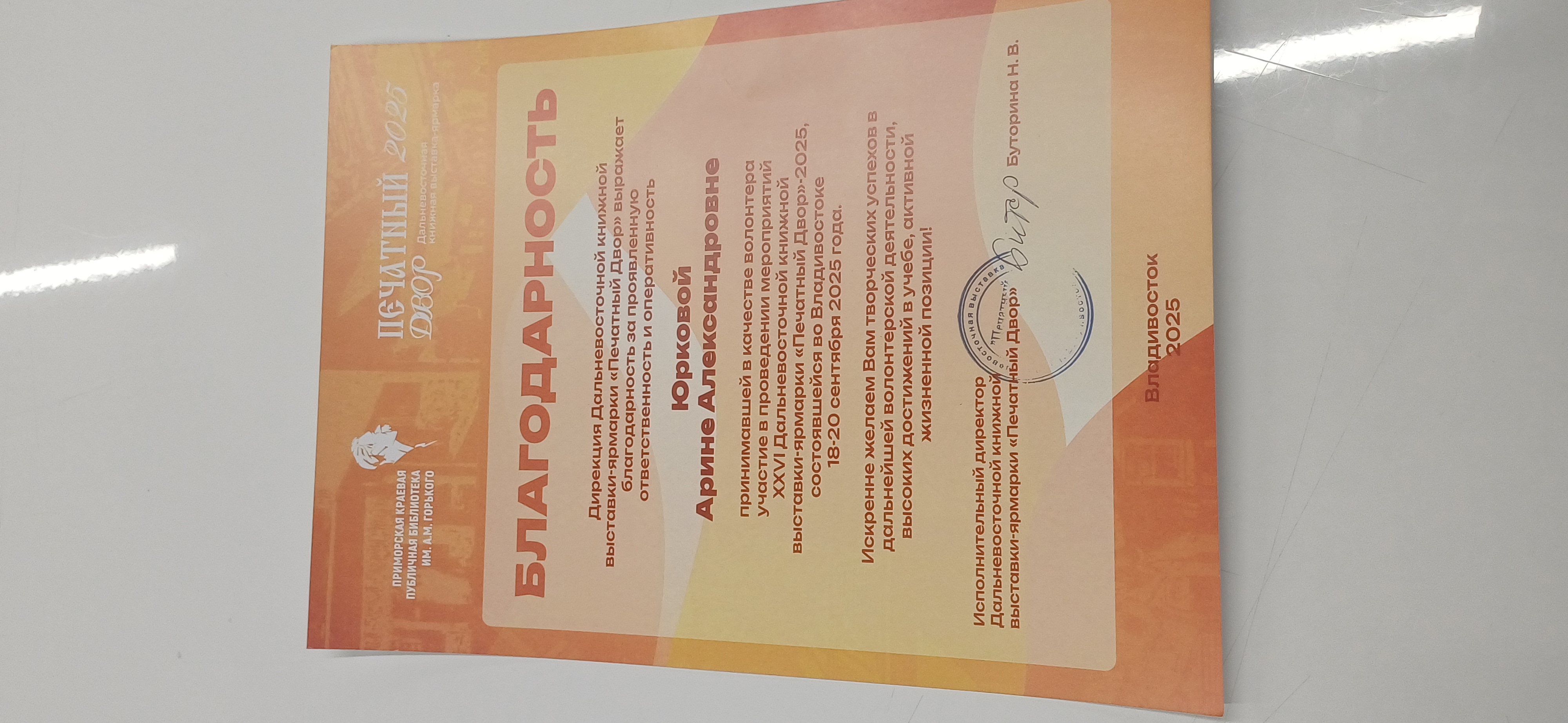 | 26 Дальневосточная выставка "Печатный двор" | Выставка | Региональный | 18.09.2025 - 20.09.2025 | Участник |