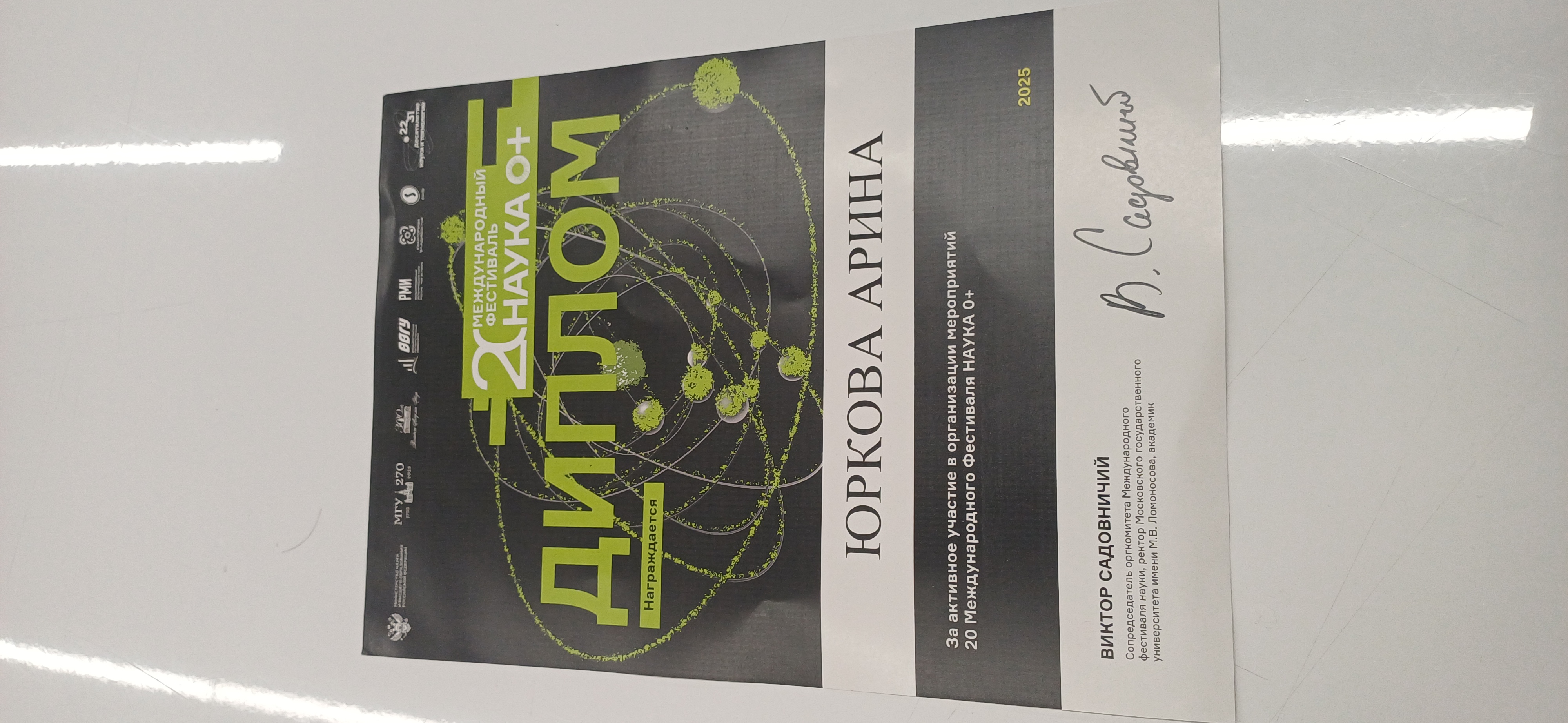| Фестиваль "Наука о+" | Фестиваль | Внутривузовский | 11.10.2025 | Участник |