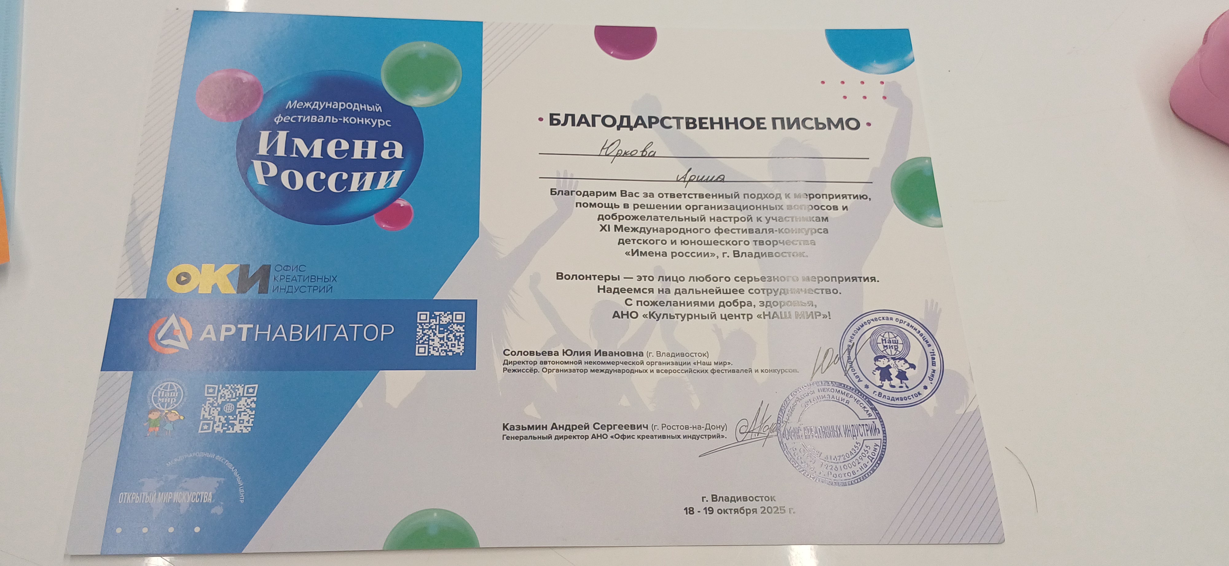 | ХІ Международный фестиваль «ИМЕНАРОССИИ» | Фестиваль | Международный | 18.10.2025 - 19.10.2025 | Участник |