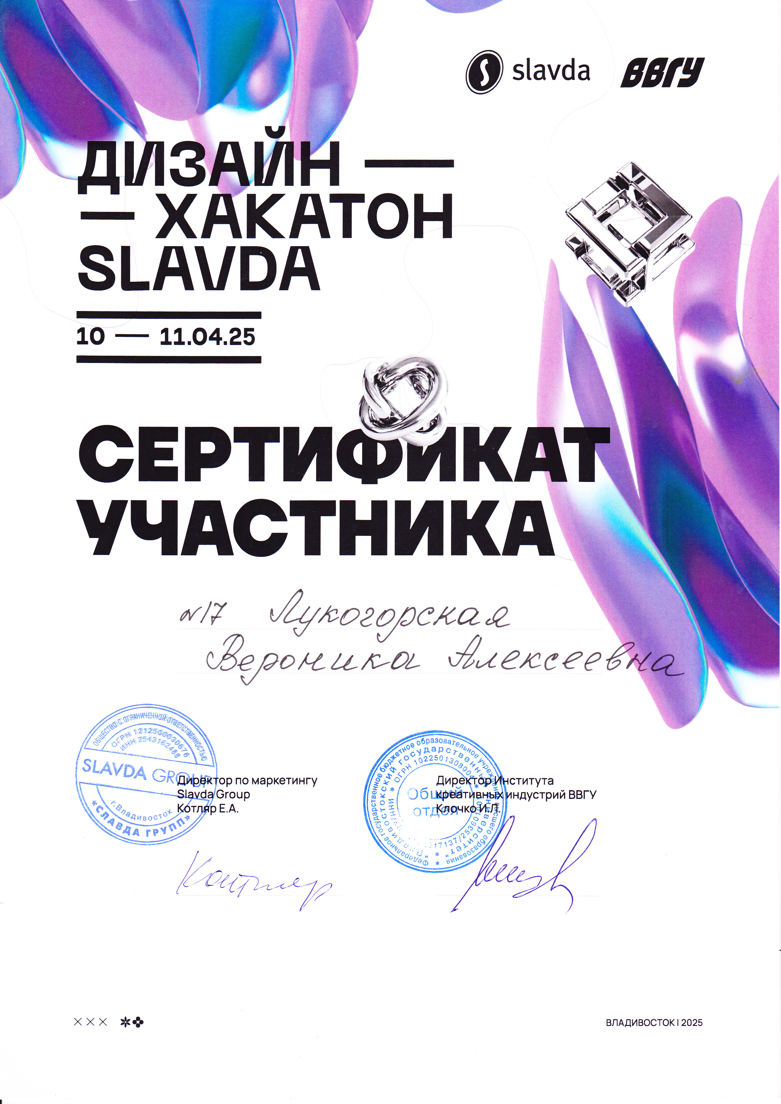 | Дизайн хакатон | Внутривузовский | 10.04.2025 - 11.04.2025 | Участник |