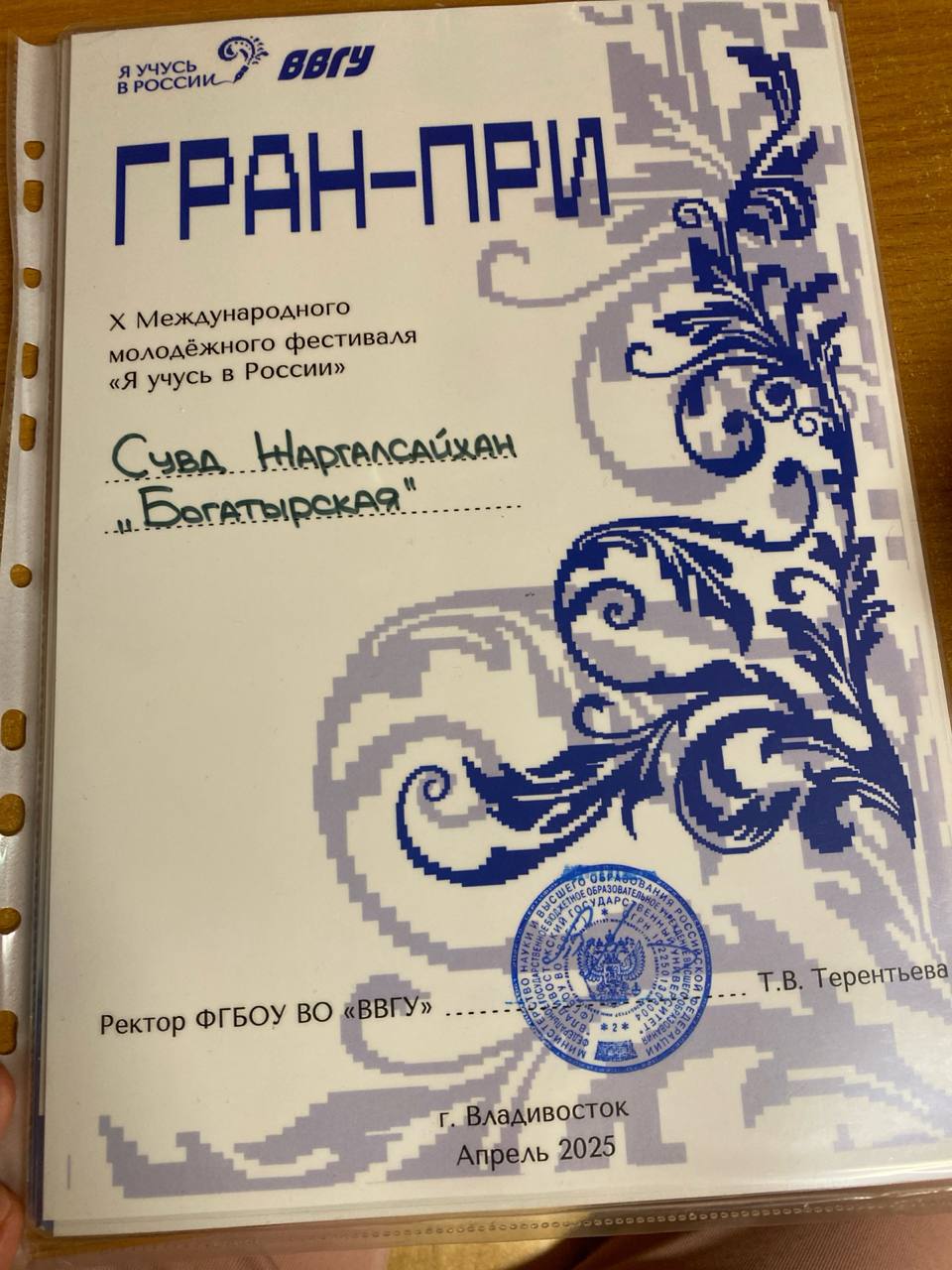 Х Международный молодежный фестиваль "Я учусь в Росси" | Конкурс | Международный | 23.04.2025 | 1 место или гран-при |