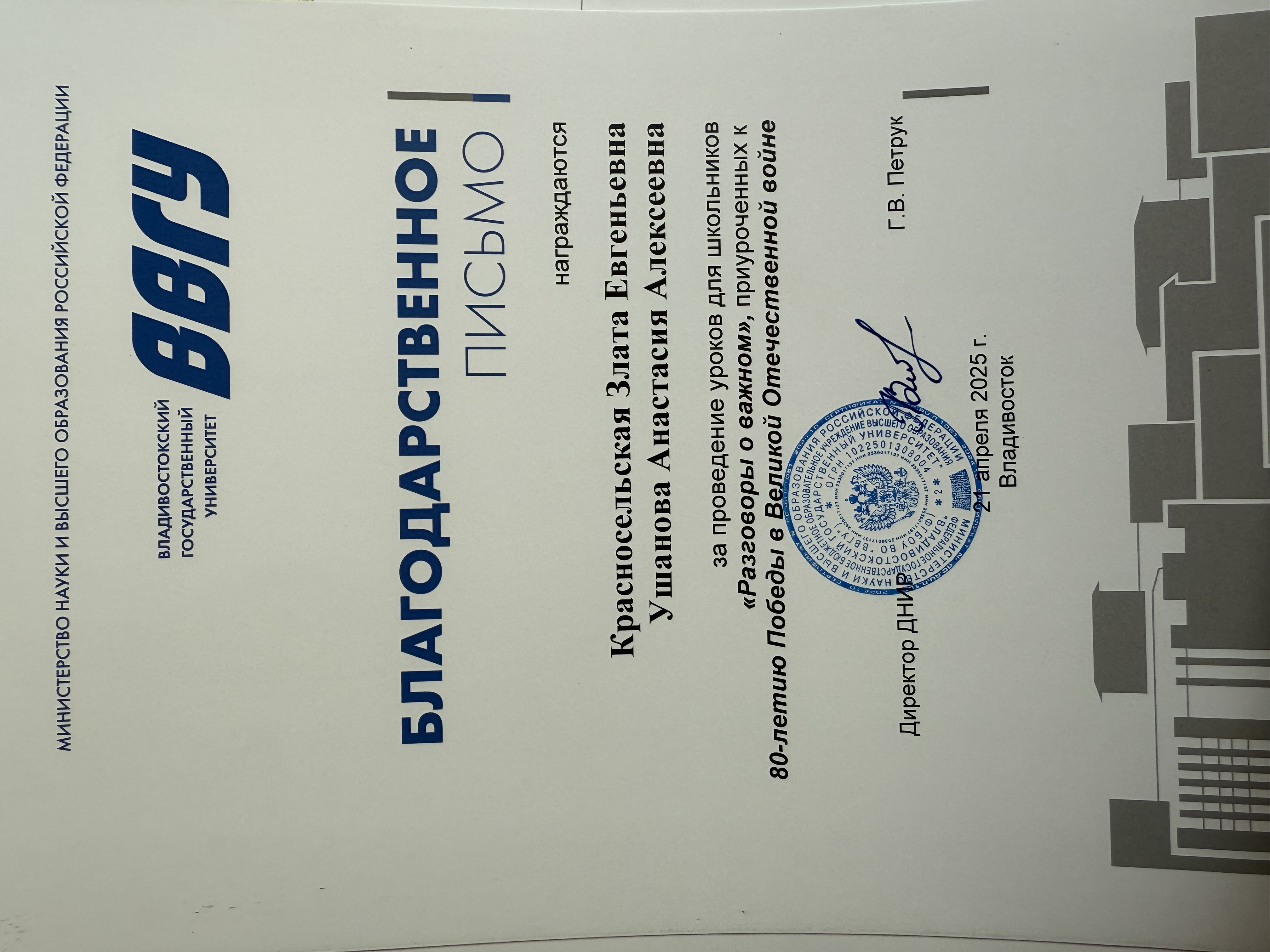 Проведение уроков для школьников «Разговоры о важном», приуроченных к 80-летию Победы в Великой Отечественной войне | Городской, краевой | 21.04.2025 |