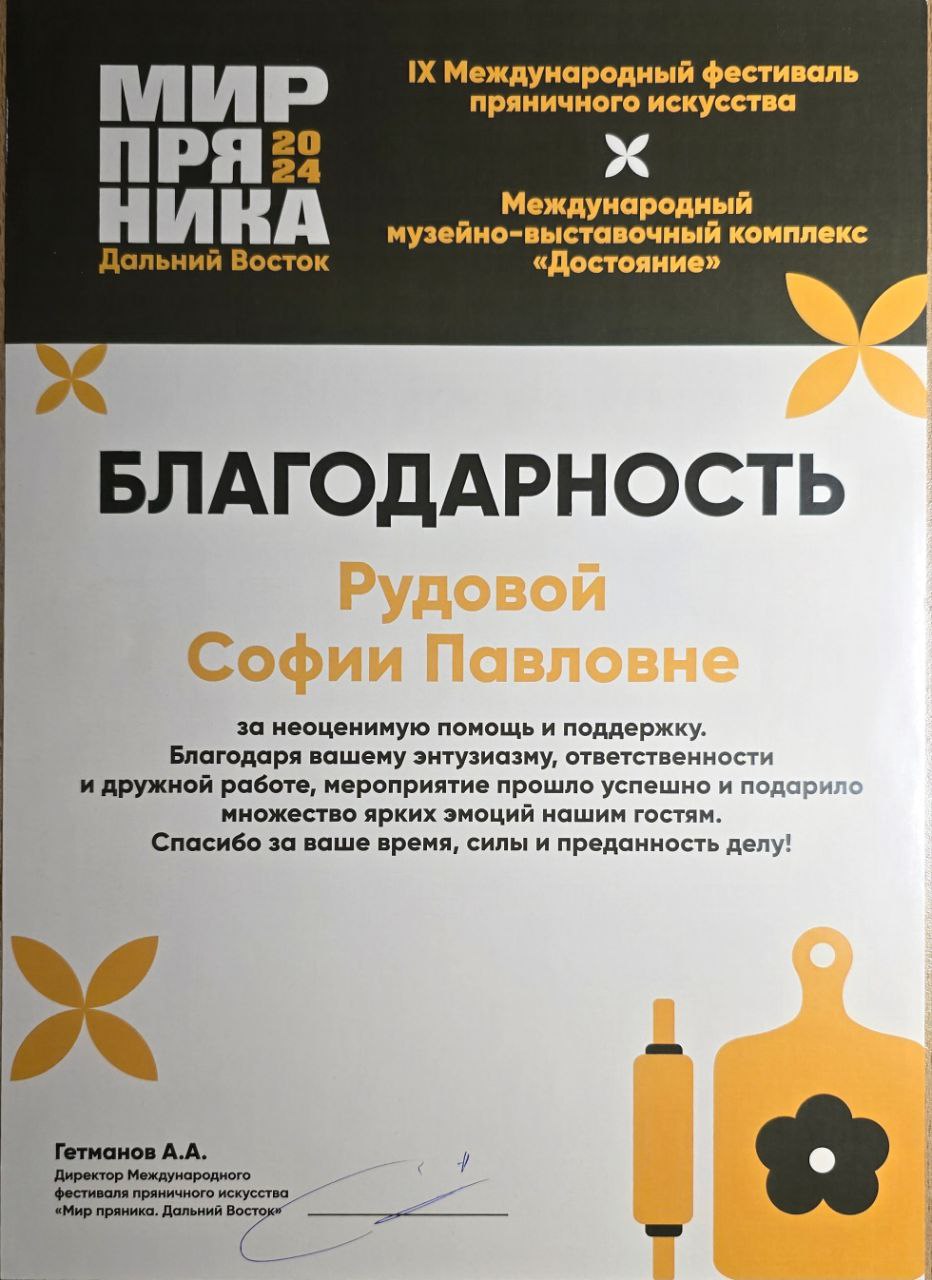 Международный фестиваль "Мир пряника" | Международный | 11.10.2024 - 13.10.2024 | Участник |