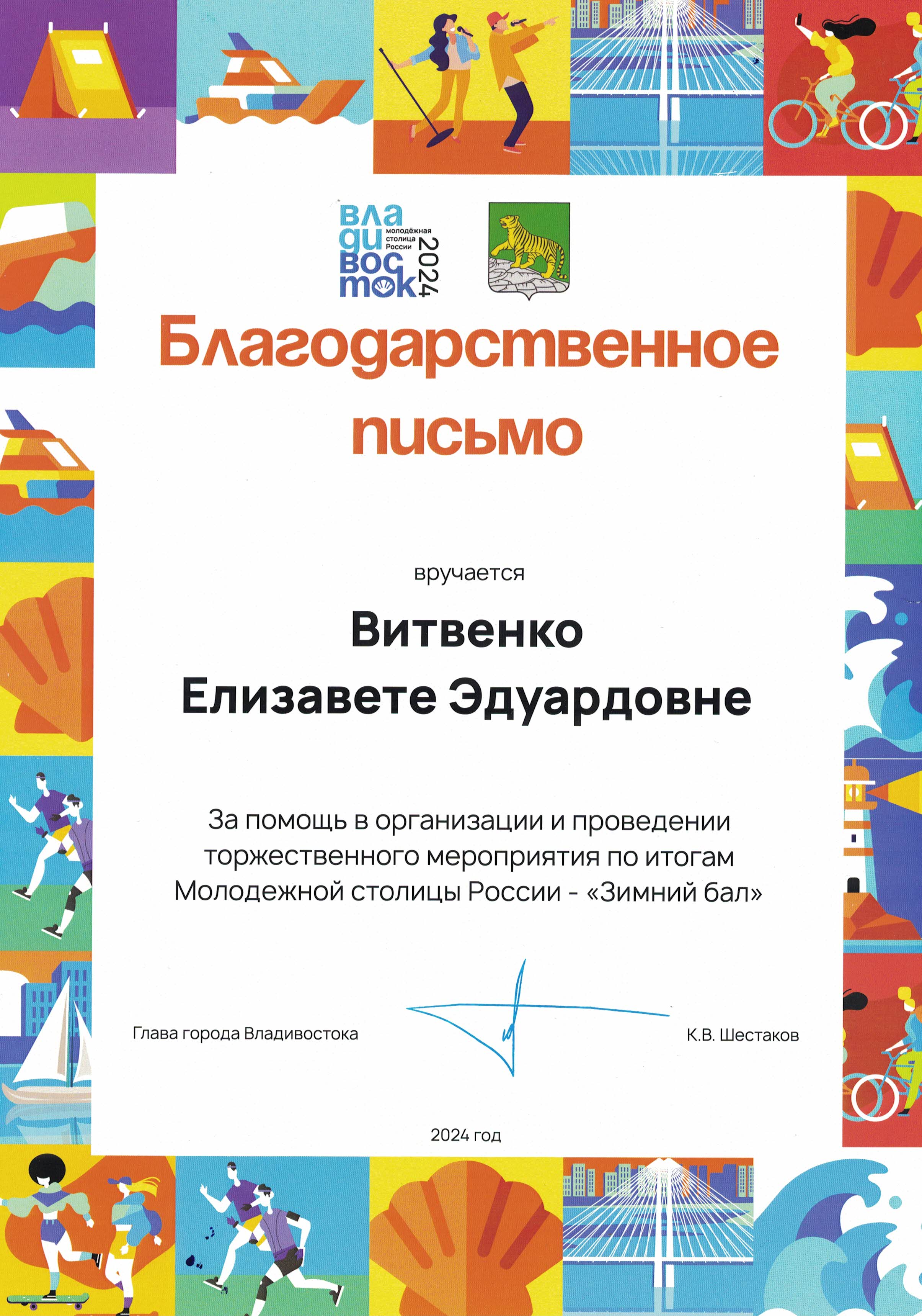 VI Форум «Экспортный потенциал Приморья» | Городской, краевой | 06.12.2024 | Волонтёр | Волонтёрская книжка | Центр волонтеров ФГБОУ ВО "ВВГУ" | ||
