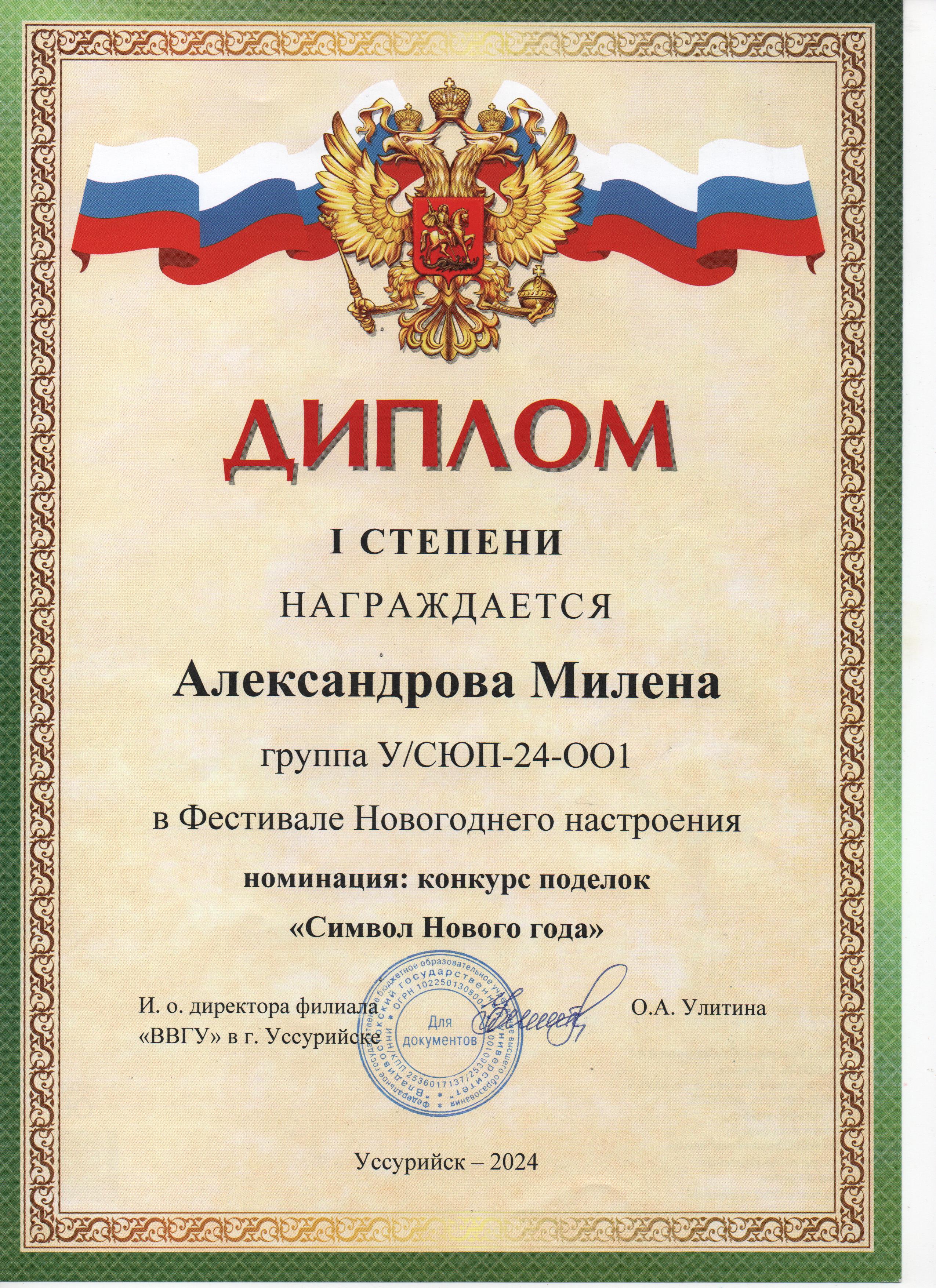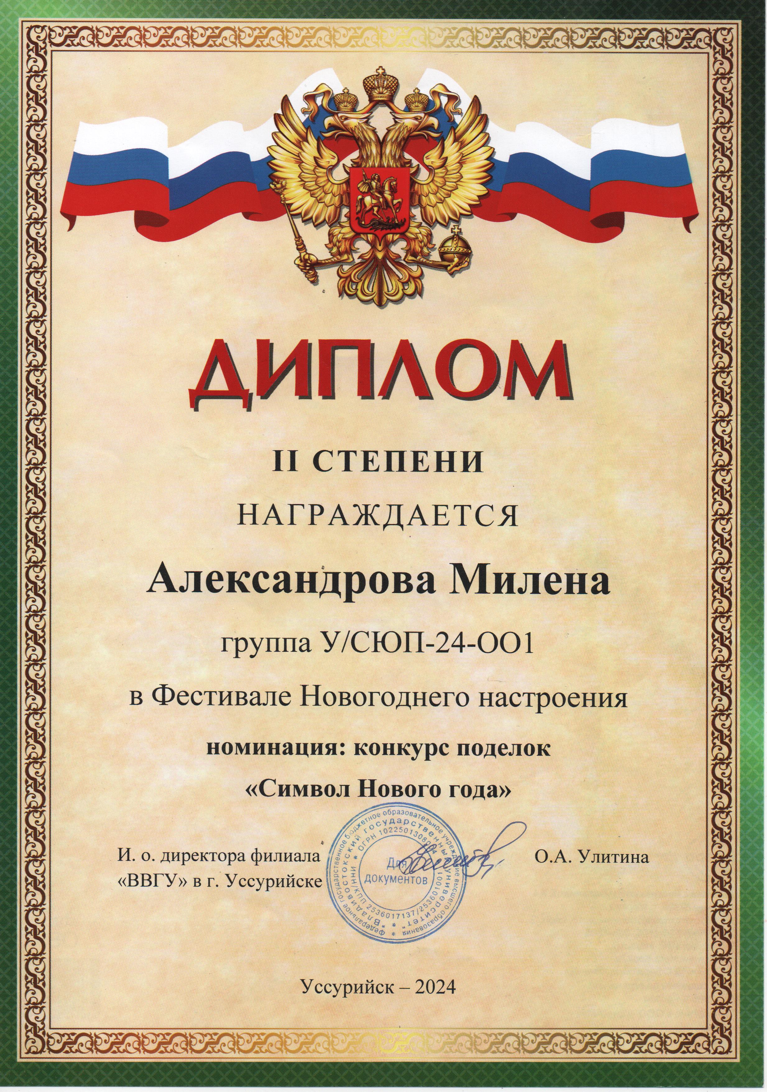 НОВОГОДНЕЕ НАСТРОЕНИЕ | конкурс поделок | Внутривузовский | 22.12.2024 - 22.12.2024 | 2 место |