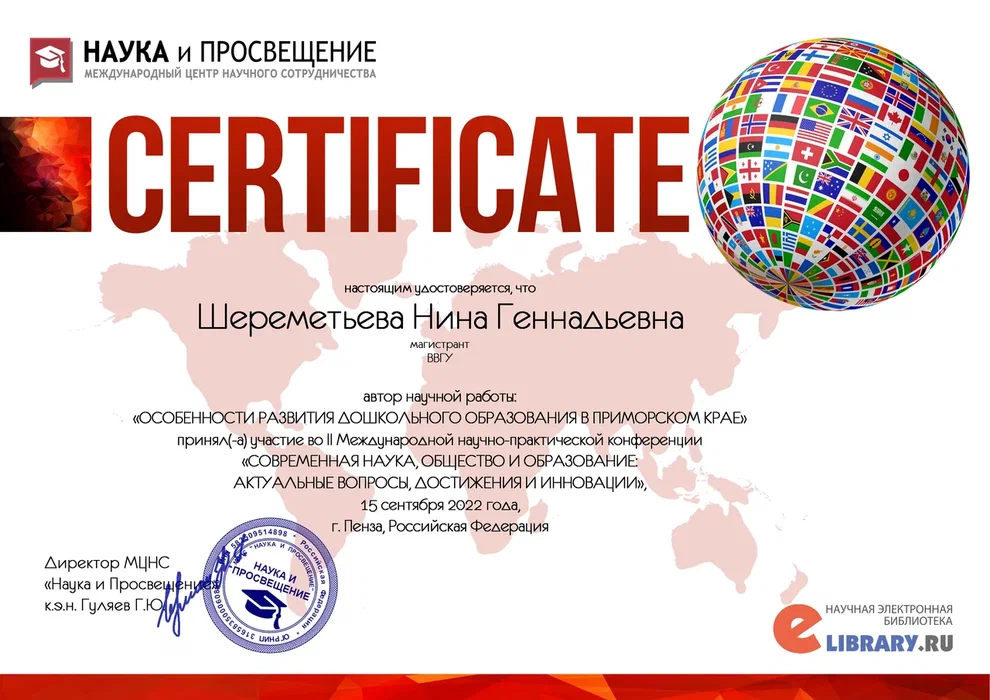 II Международная научно-практическая конференция «Современная наука, общество и образование: актуальные вопросы, достижения инновации» | Международный | 15.09.2022 | Участник |