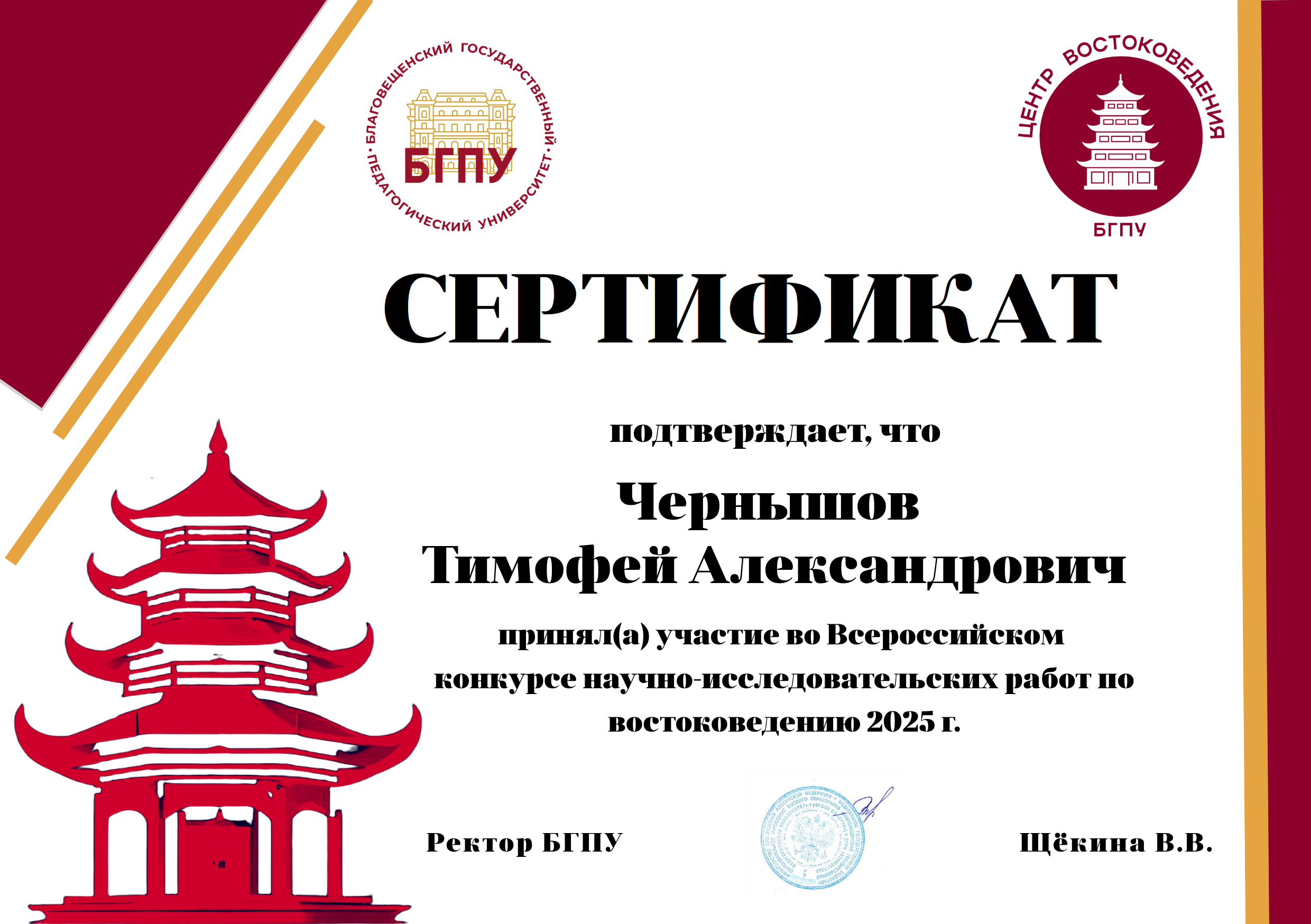 | Всероссийский конкурс научно-исследовательских работ по востоковедению | Всероссийский | 01.11.2025 - 01.12.2025 | Участник |