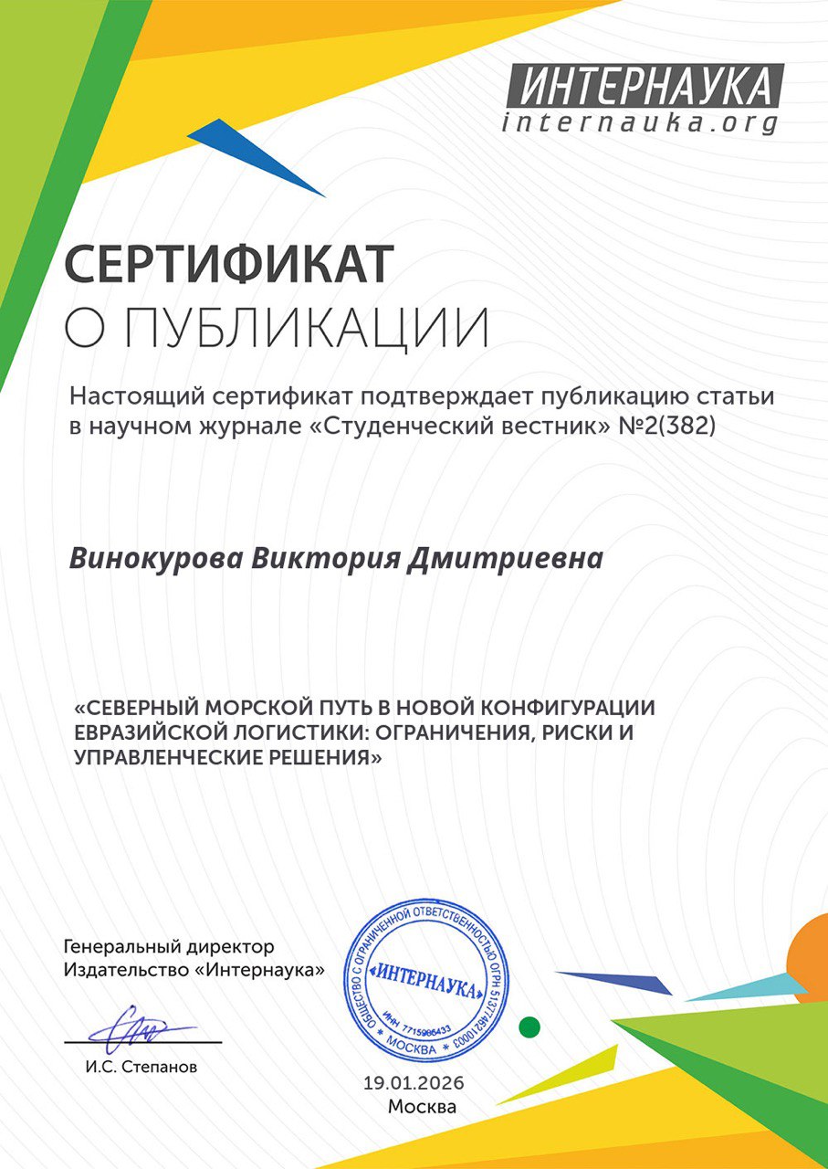Научный журнал "Студенческий вестник" №2(382) Всероссийский 19.01.2026 - 19.01.2026 Участник Сертификат