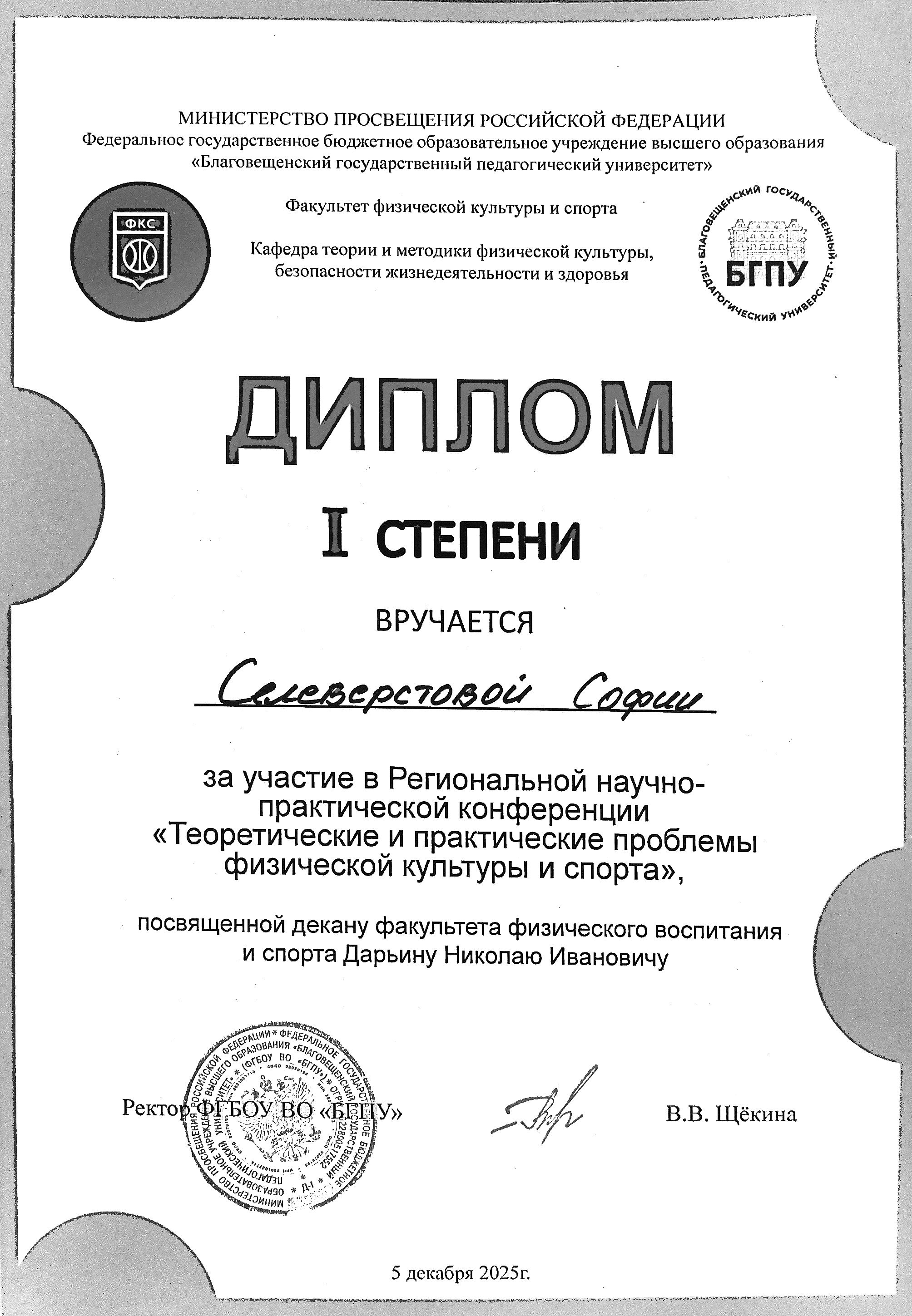 | Региональная научно-практическая конференция | Региональный | 05.12.2025 | 1 место или гран-при |