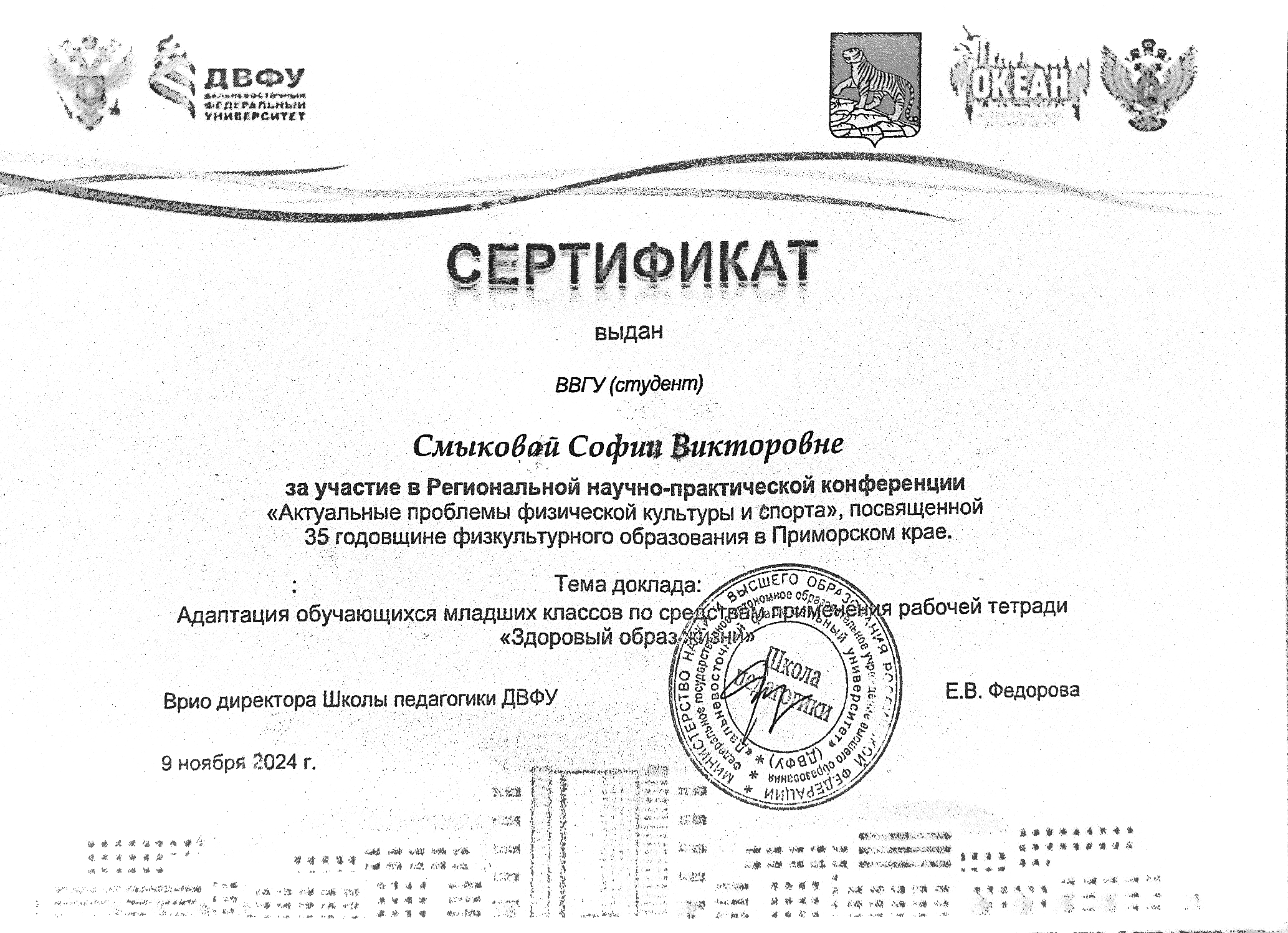 Региональная научно-практическая конференция | Региональный | 09.11.2024 | Участник |