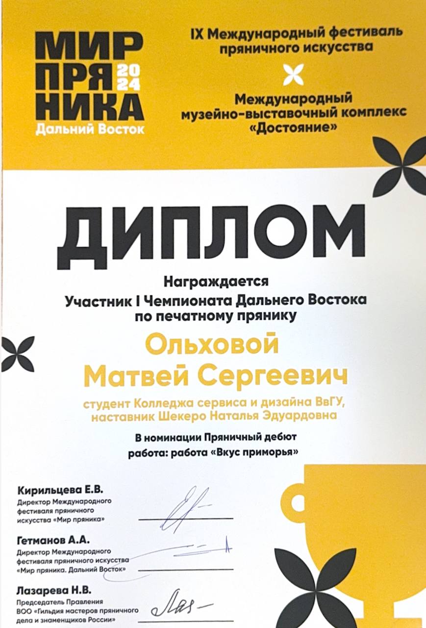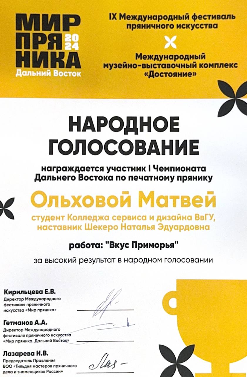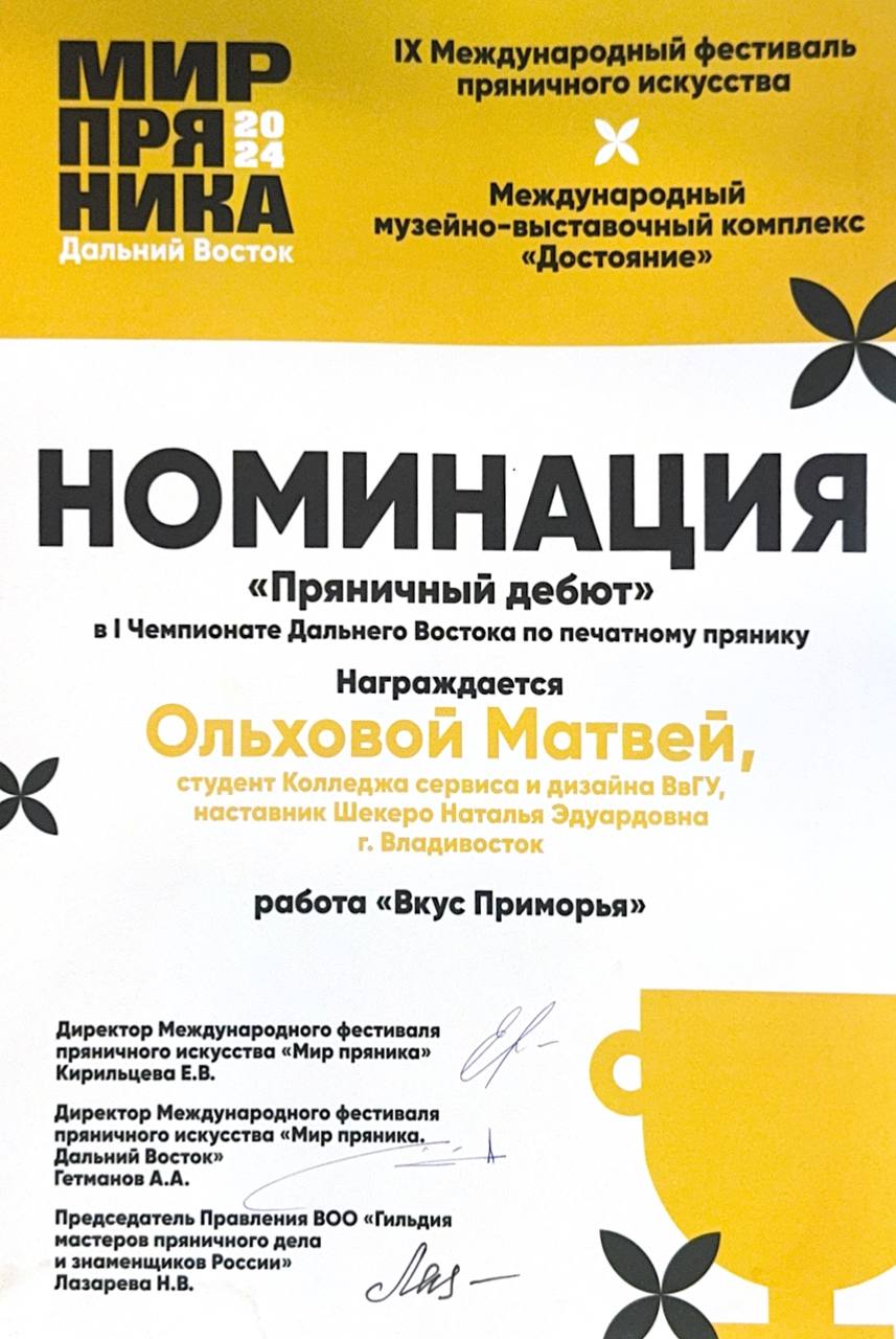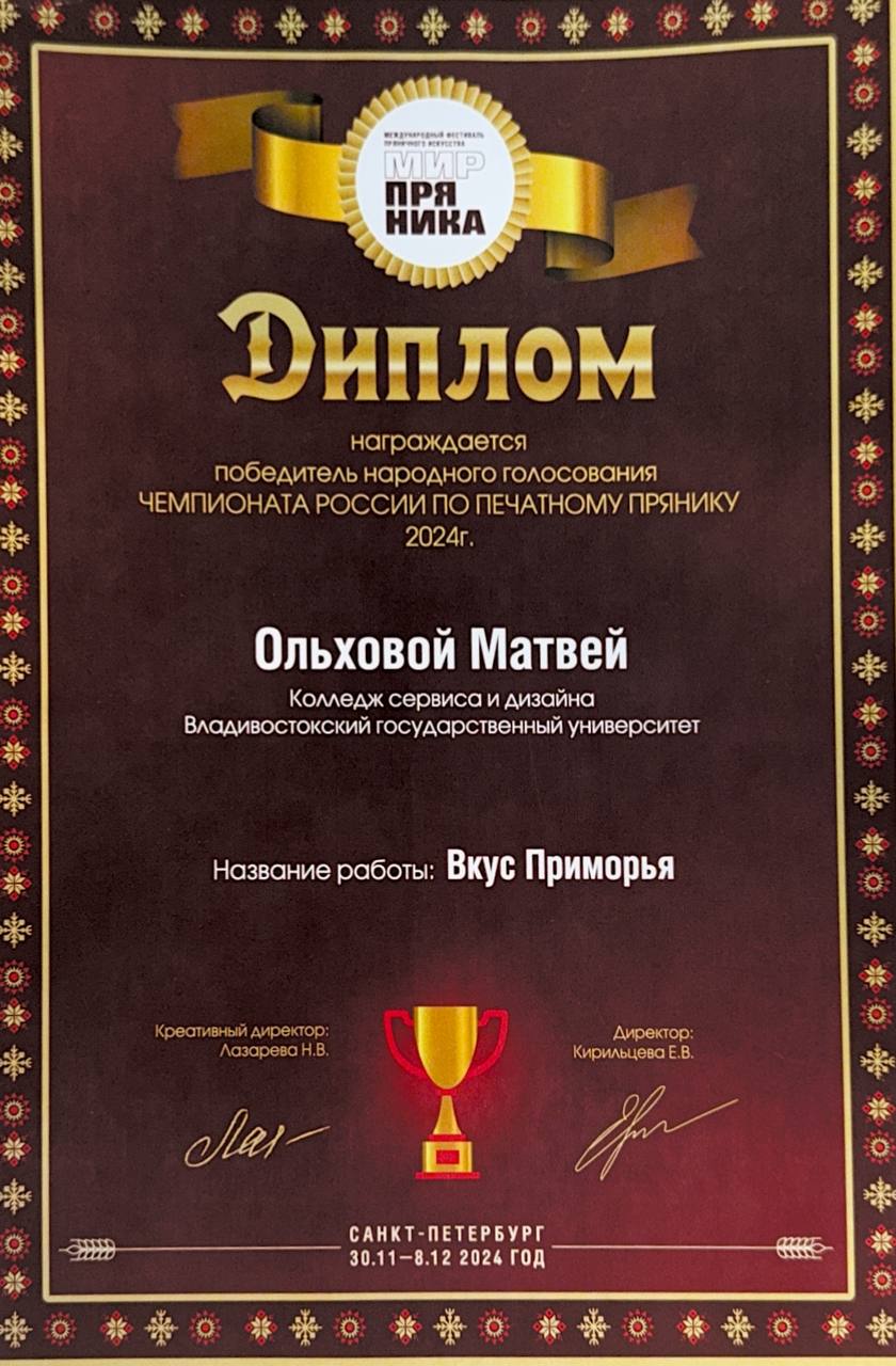 Фестиваль мир пряника Владивосток | Международный | 11.10.2024 - 15.10.2024 | Победитель |