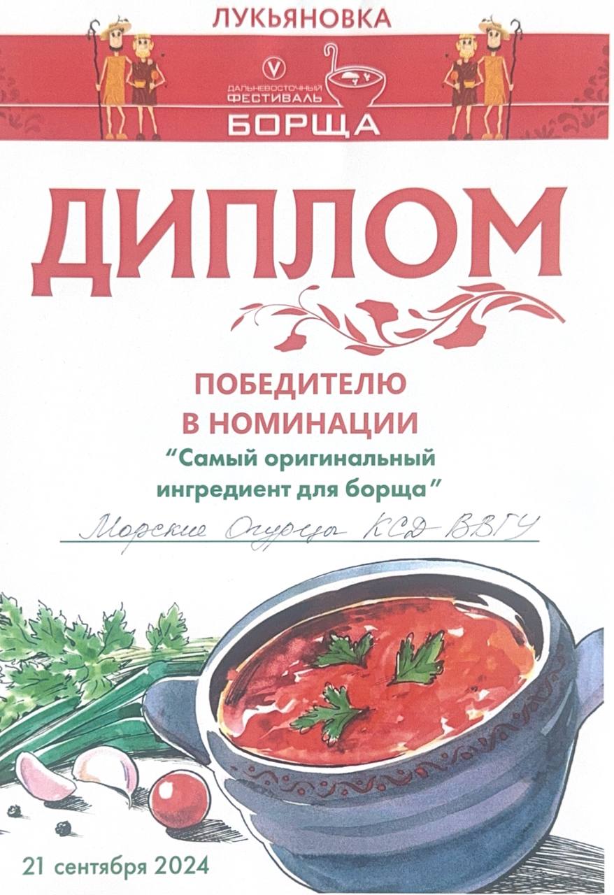 Фестиваль Борща 2024 | кулинарный конкурс | Городской, краевой | 21.09.2024 - 21.01.2025 | Победитель |