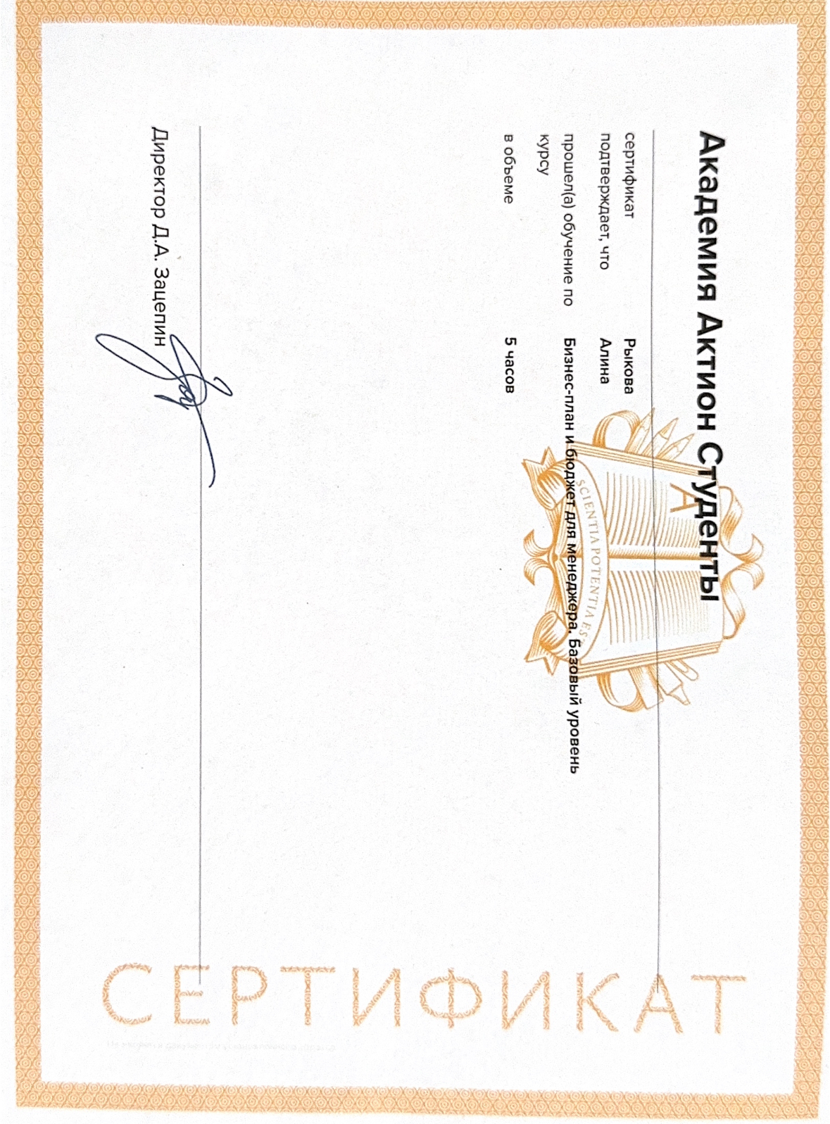 Бизнес-план и бюджет для менеджера. Базовый уровень | Обучение | Всероссийский | 01.01.2025 - 13.01.2025 | Сертификат |