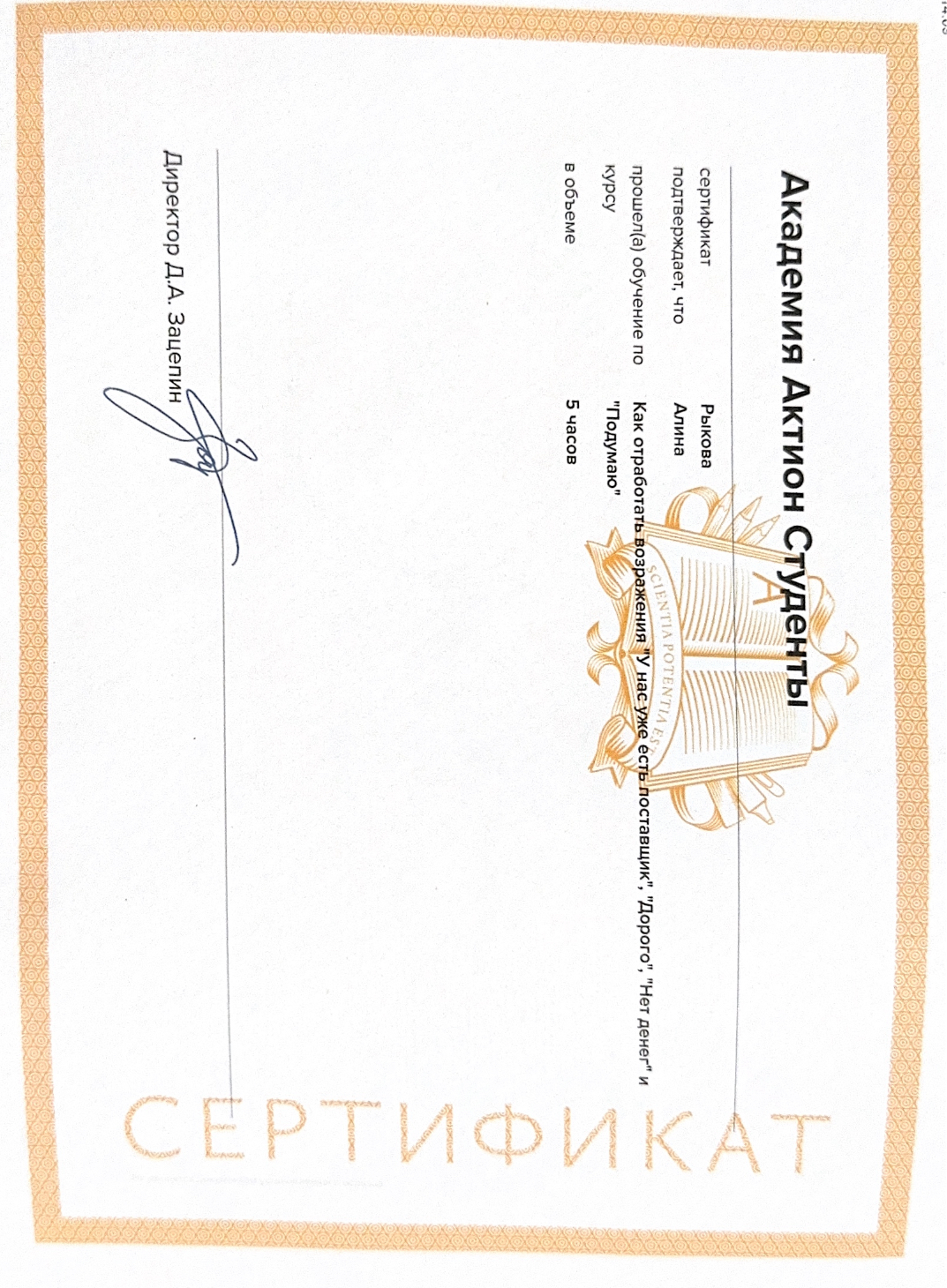 Как отработать возражения «У нас уже есть поставщик», «Дорого», «Нет денег» и «Подумаю» | Обучение | Всероссийский | 07.01.2025 - 13.01.2025 | Сертификат |