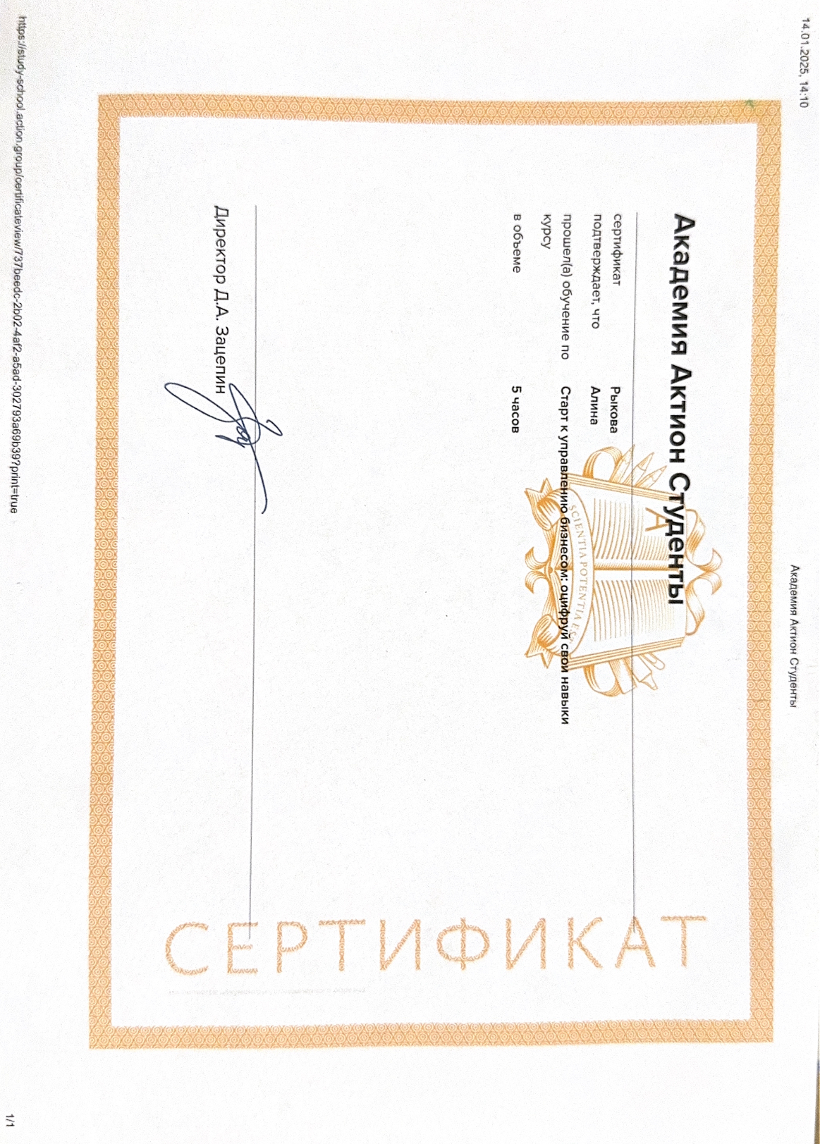 Старт к управлению бизнесом: оцифруй свои навыки | Обучение | Всероссийский | 30.12.2024 - 13.01.2025 | Сертификат |