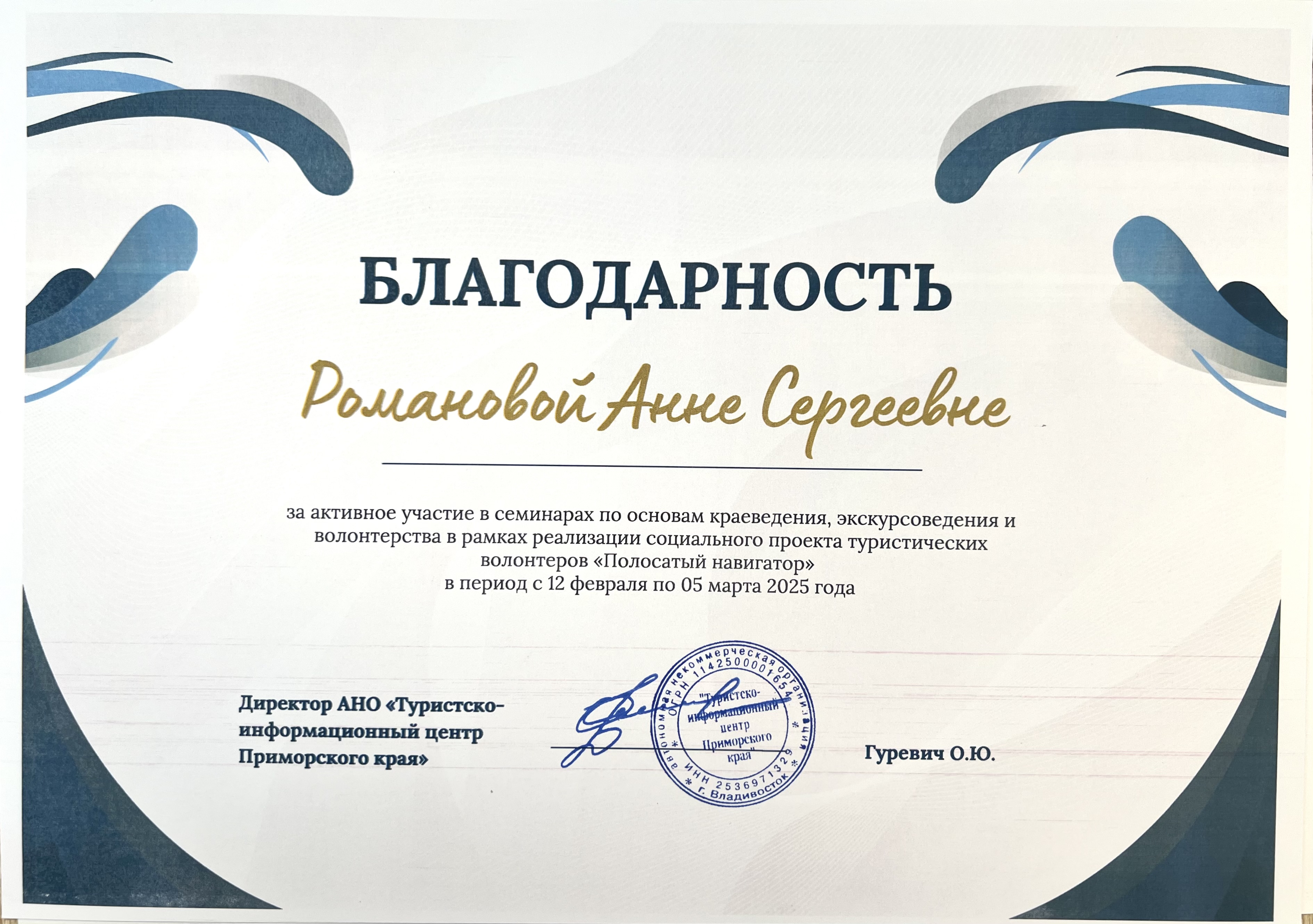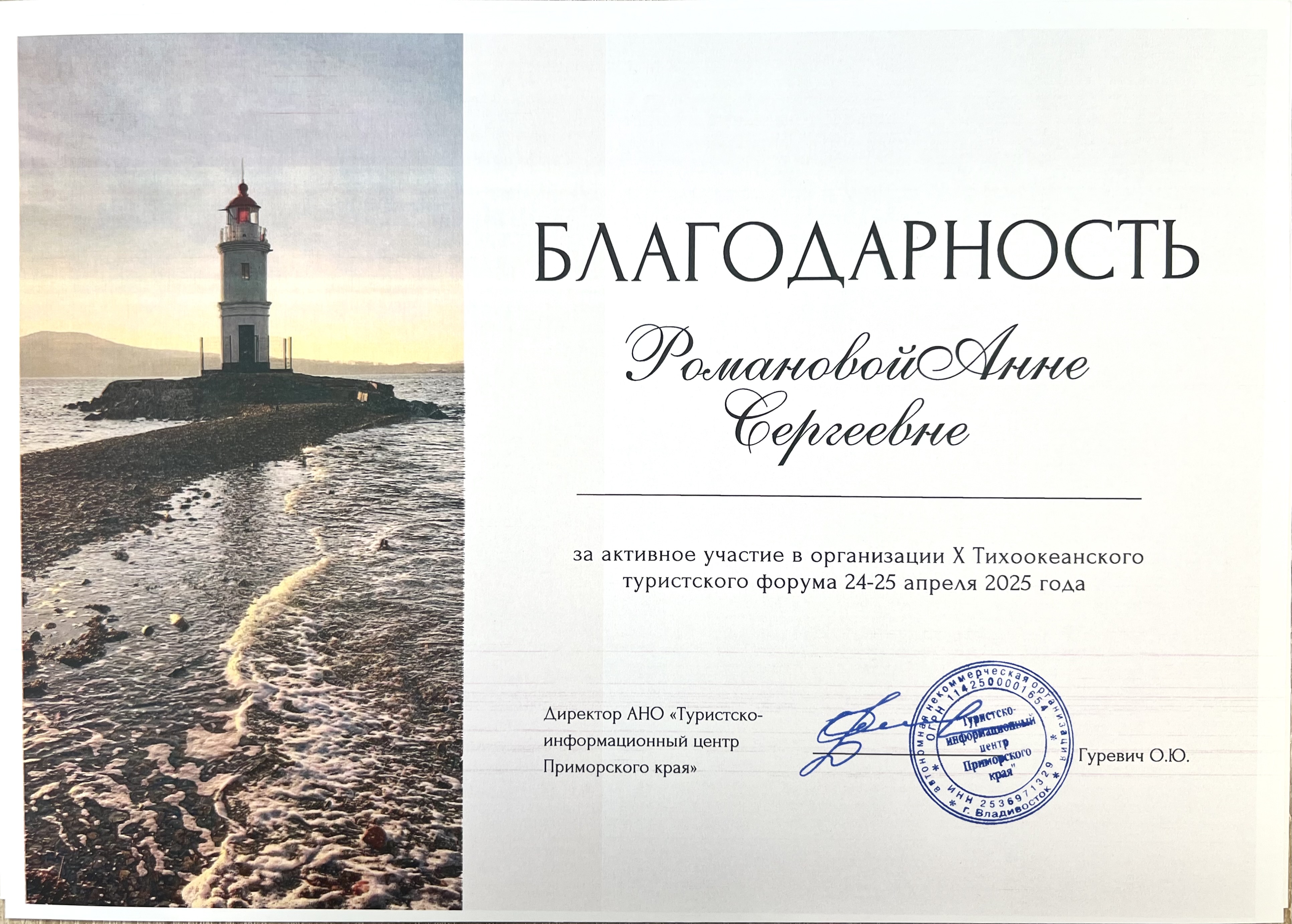 Х Тихоокеанский туристский форум | Региональный | 24.04.2025 - 25.04.2025 | Участник |