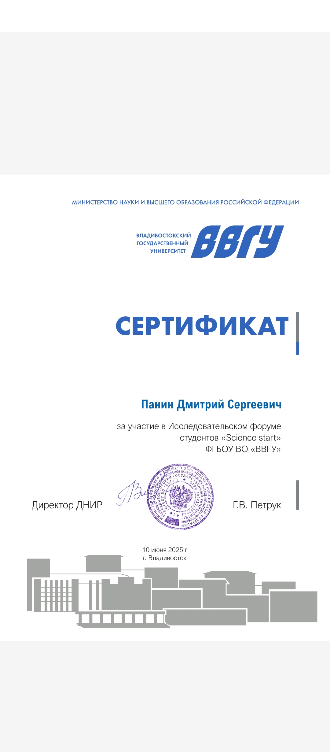 Sience Smart 2025 Внутривузовский 10.06.2025 - 10.06.2025 Участник Сертификат