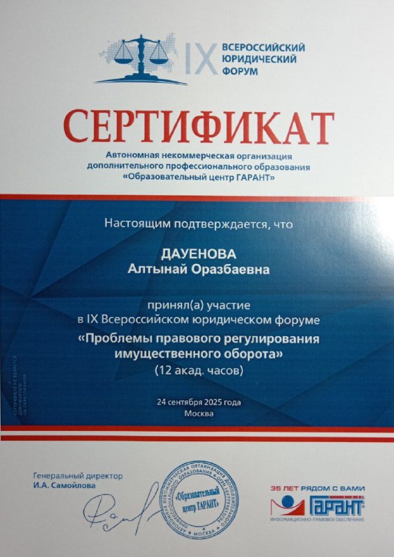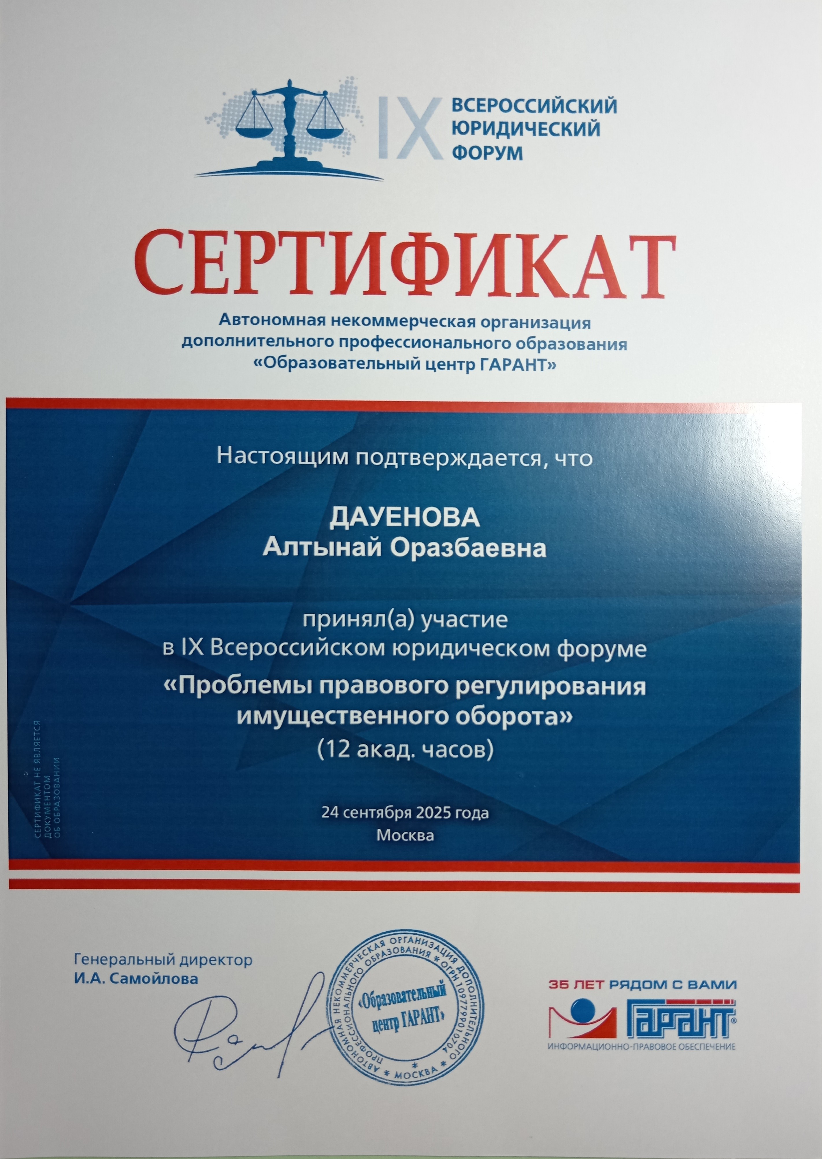 | IX Всероссийский Юридический форум | Всероссийский | 24.09.2025 | Участник |