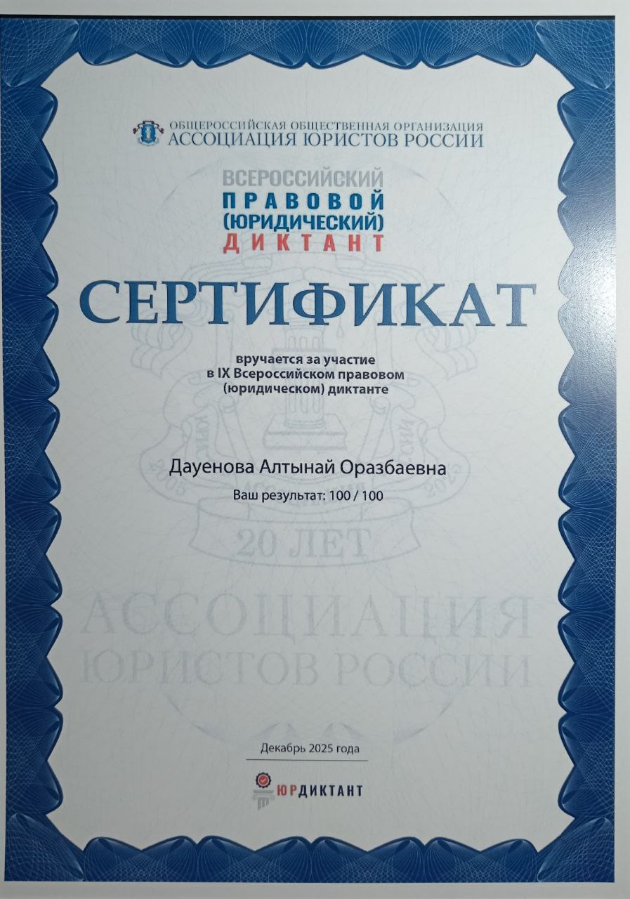 | Всероссийский Юридический Диктант | Всероссийский | 03.12.2025 | Участник |