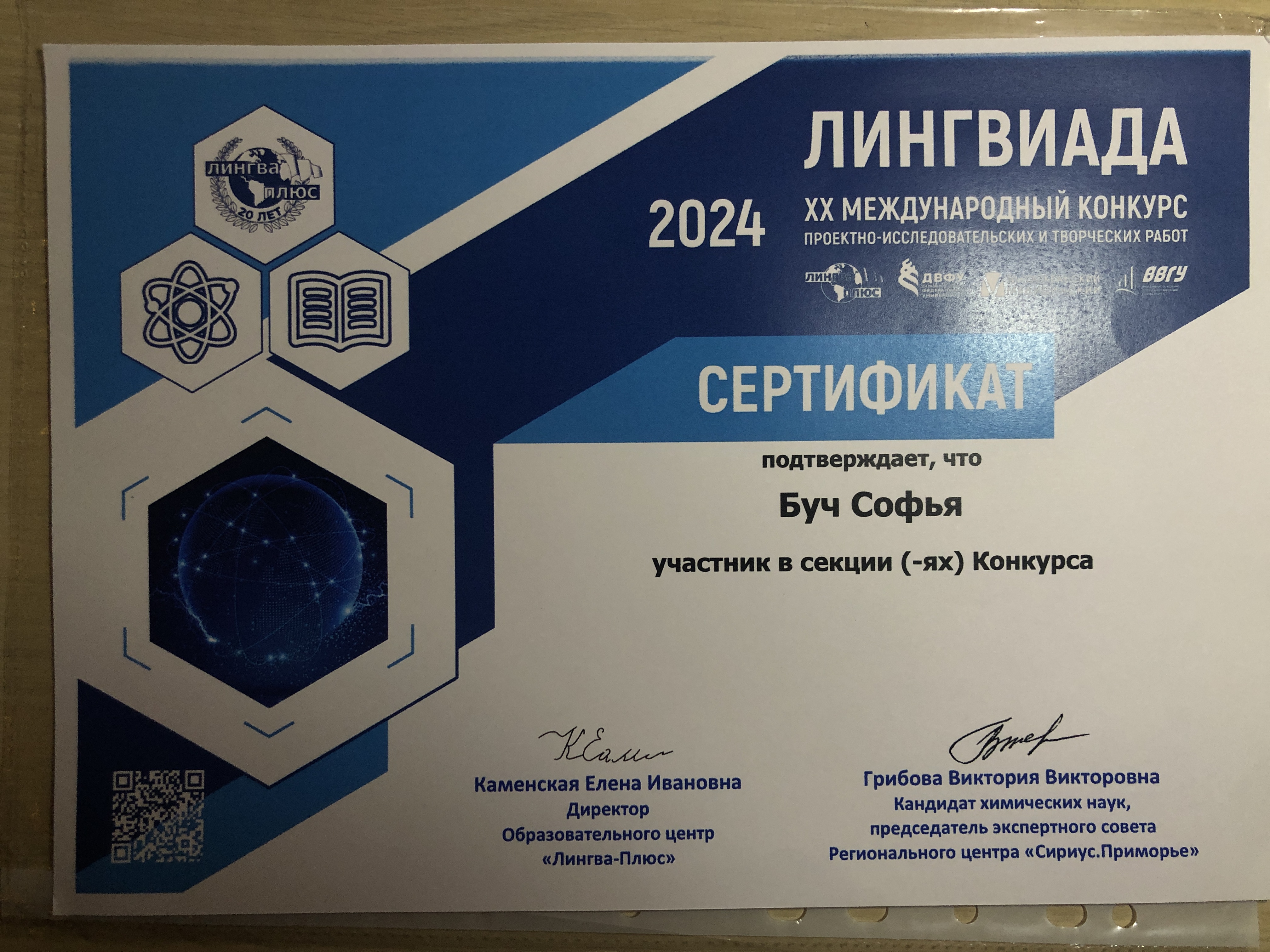 Лингвиада 2024 XX международный конкурс проектно-исследовательских и творческих работ | Конкурс | Международный | 09.04.2024 - 11.04.2024 | Участник |