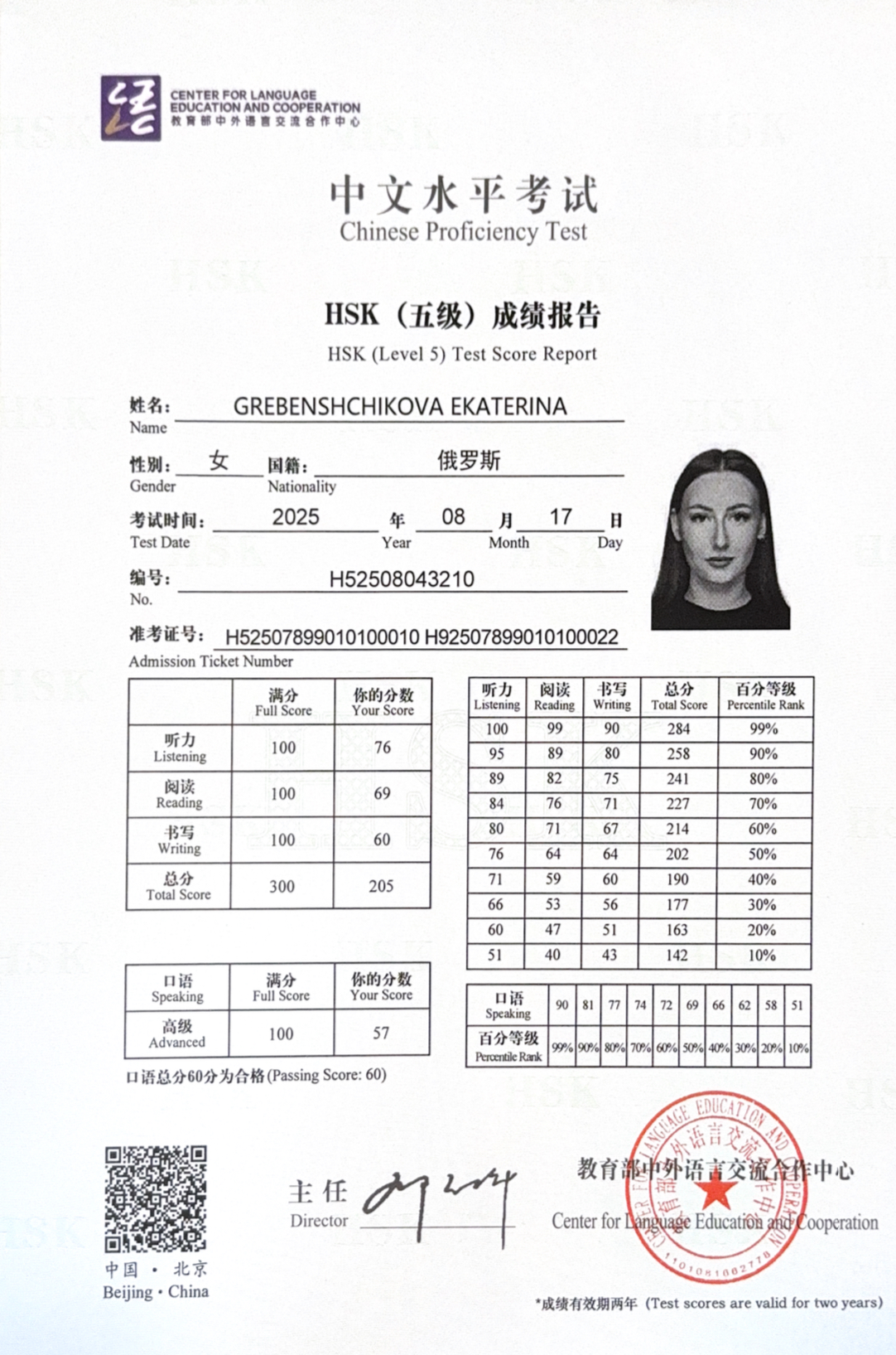 | HSK 5 | Международный | 17.08.2025 - 17.08.2025 |