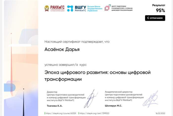 Прохождение курсов "Эпоха цифрового развития: основы цифровой трансформации"