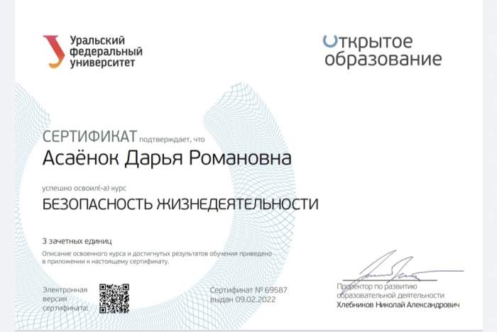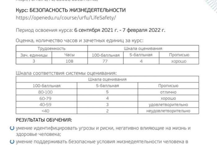 Прохождение курсов "БЕЗОПАСНОСТЬ ЖИЗНЕДЕЯТЕЛЬНОСТИ"