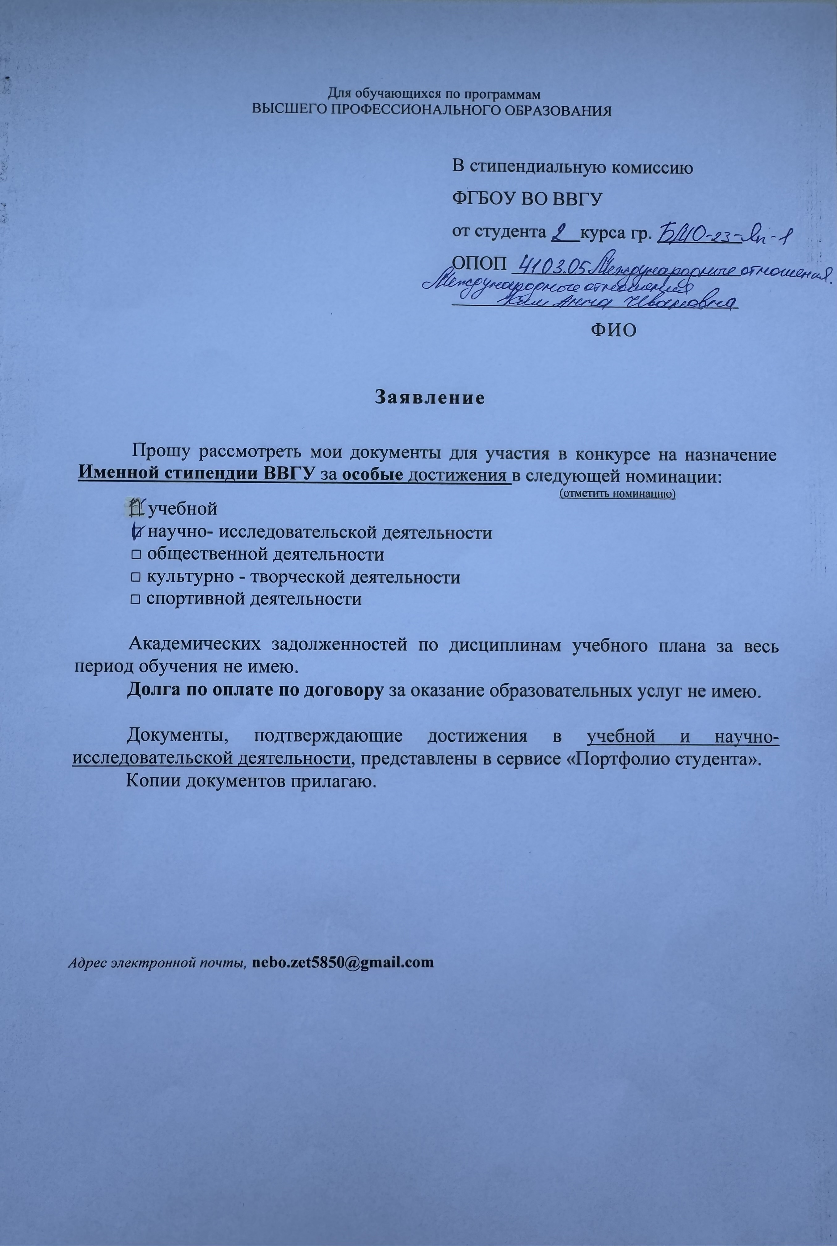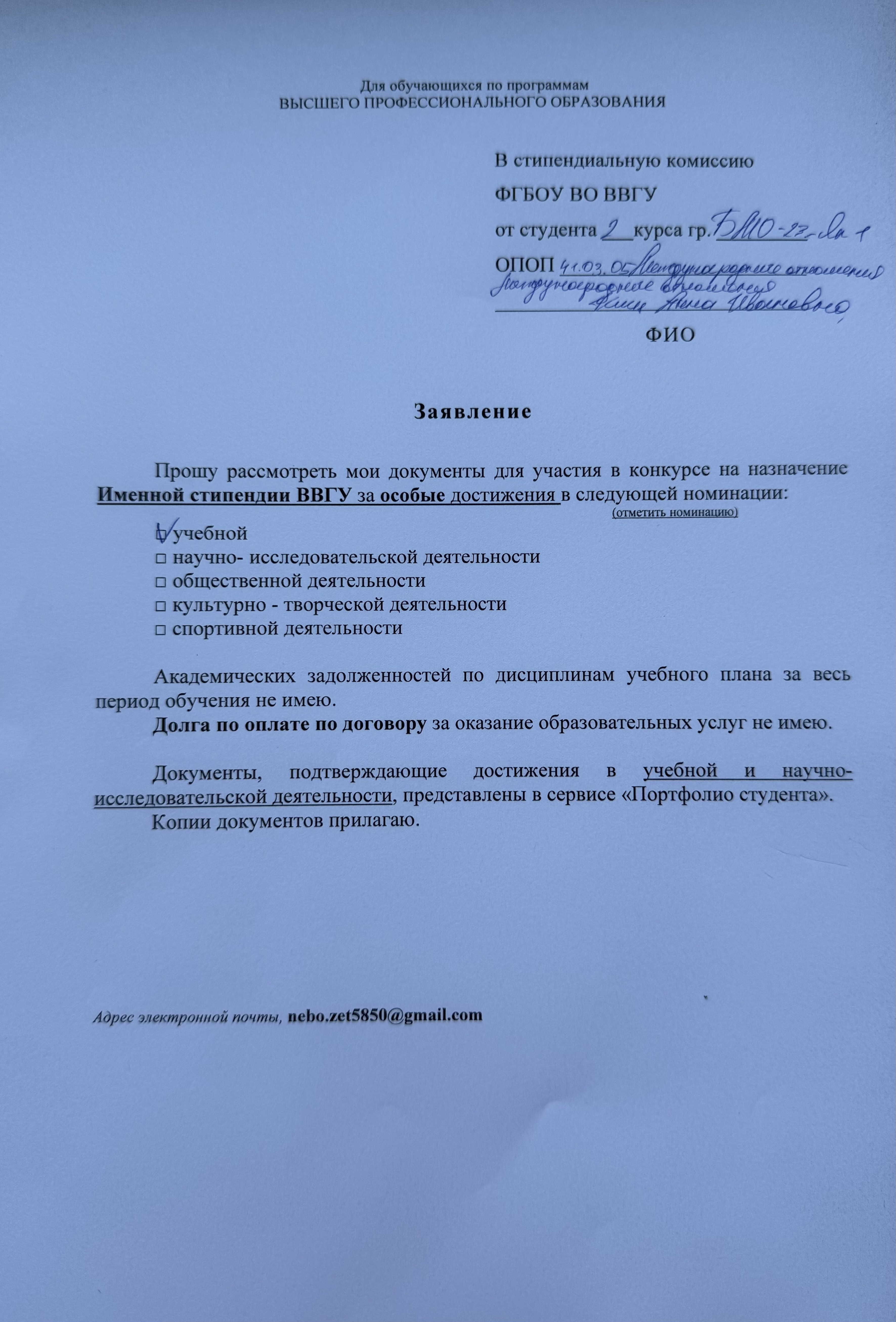 Конкурс на назначение Повышенной государственной академической стипендии и Именной стипендии ВВГУ за особые достижения