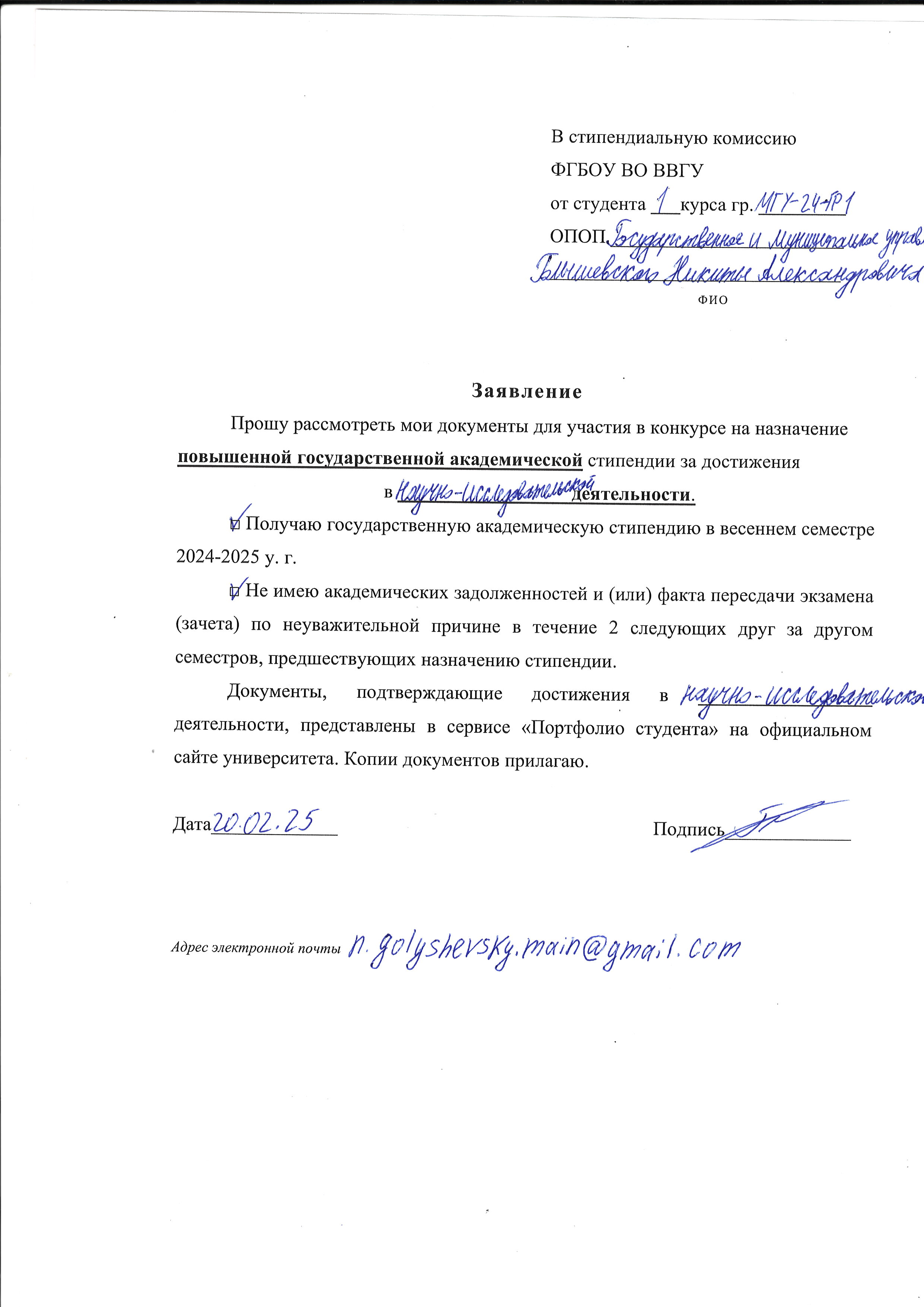 Конкурс на назначение Повышенной государственной академической стипендии и Именной стипендии ВВГУ за особые достижения