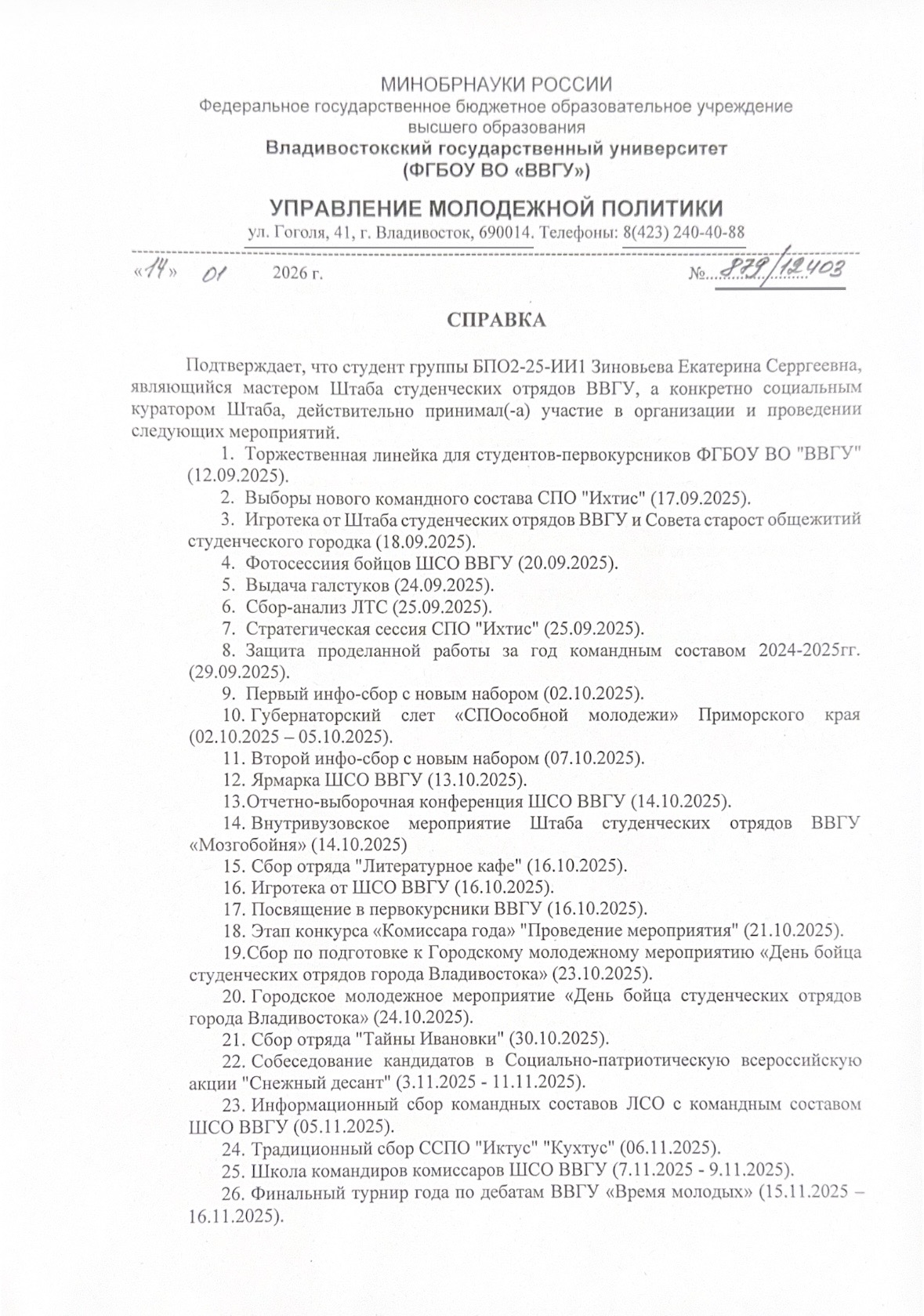 Конкурс на назначение Повышенной государственной академической стипендии и Именной стипендии ВВГУ за особые достижения