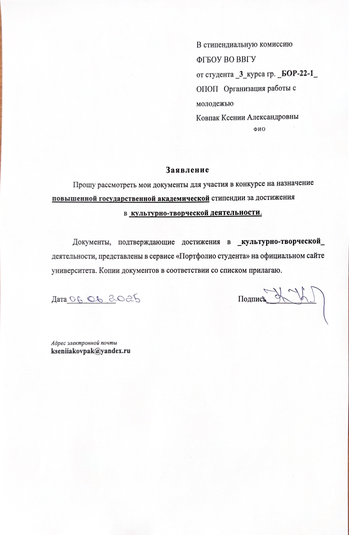 Конкурс на назначение Повышенной государственной академической стипендии и Именной стипендии ВВГУ за особые достижения