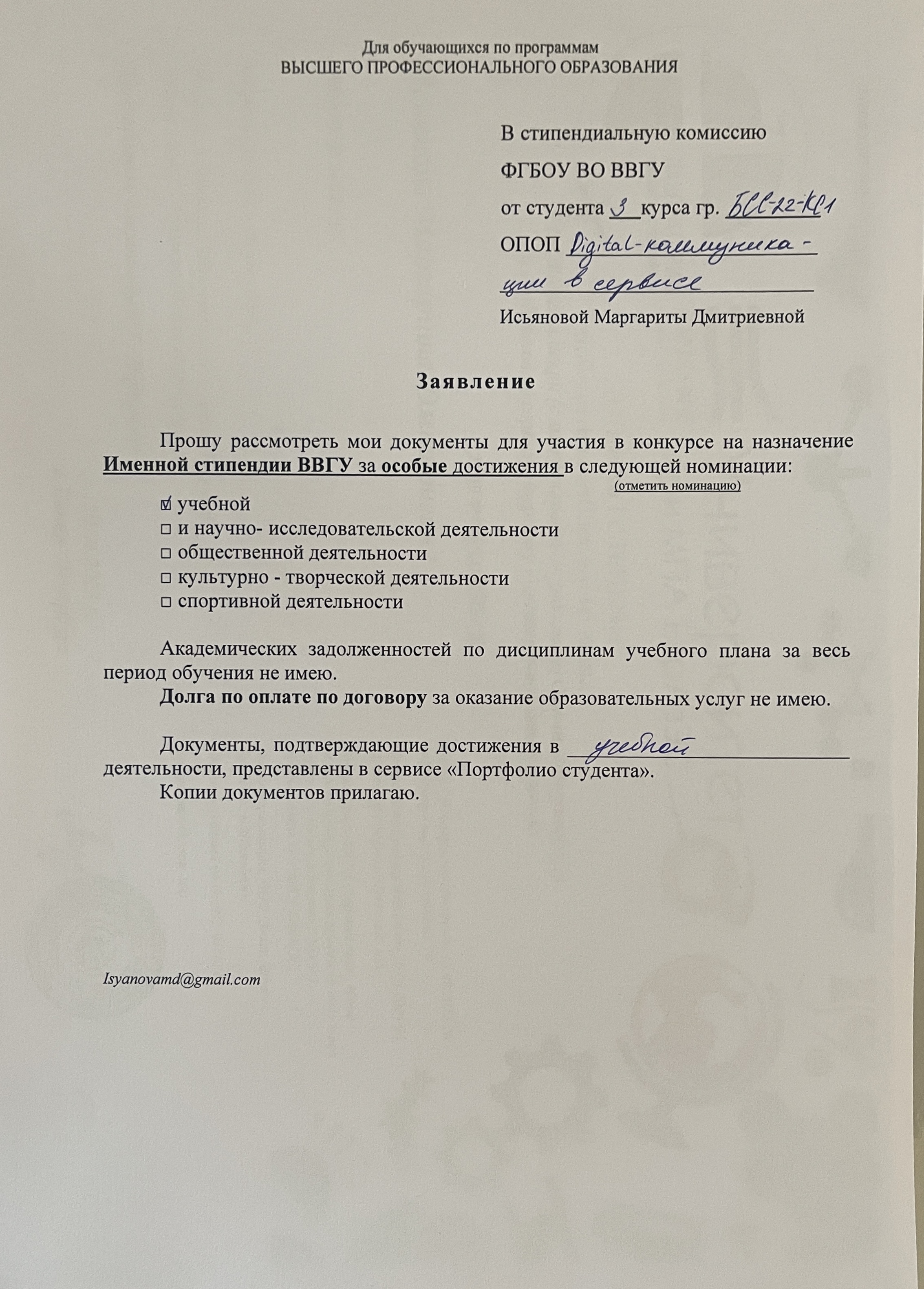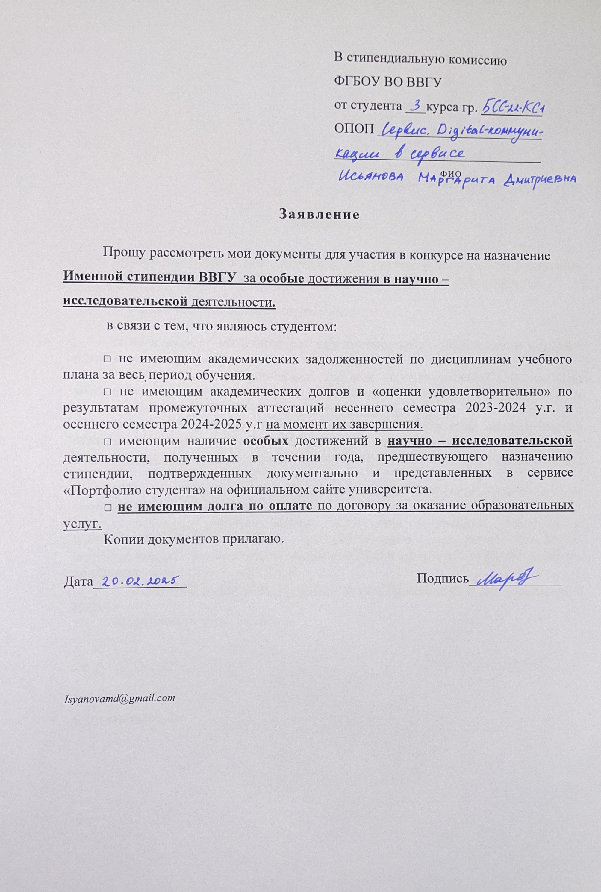 Конкурс на назначение Повышенной государственной академической стипендии и Именной стипендии ВВГУ за особые достижения