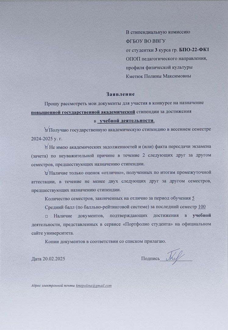 Конкурс на назначение Повышенной государственной академической стипендии и Именной стипендии ВВГУ за особые достижения