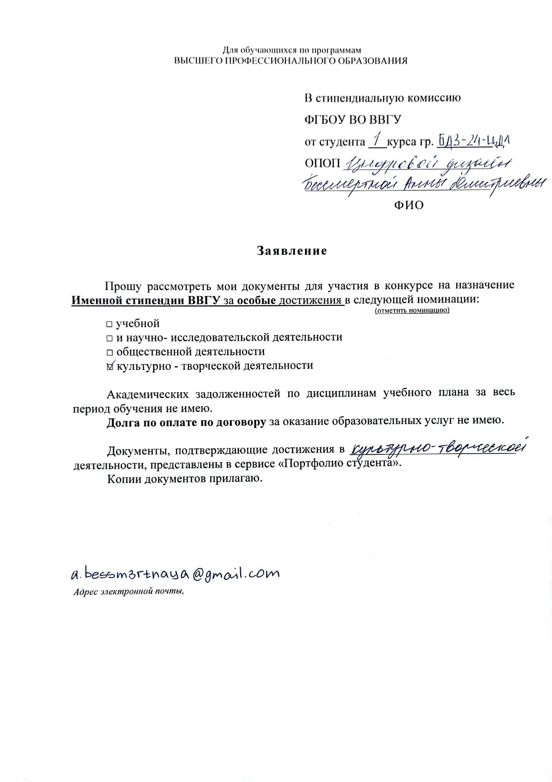 Конкурс на назначение Повышенной государственной академической стипендии и Именной стипендии ВВГУ за особые достижения