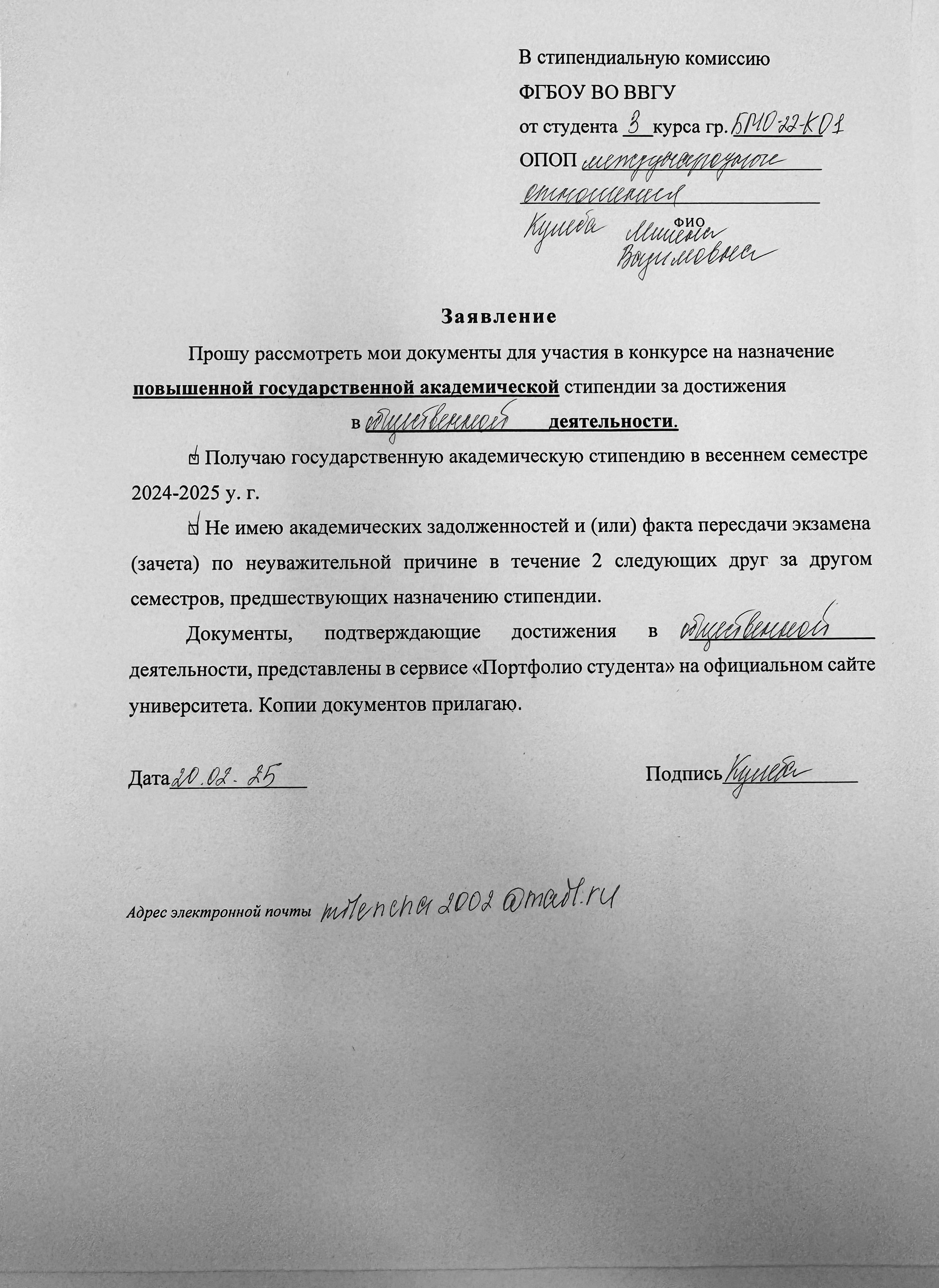Конкурс на назначение Повышенной государственной академической стипендии и Именной стипендии ВВГУ за особые достижения