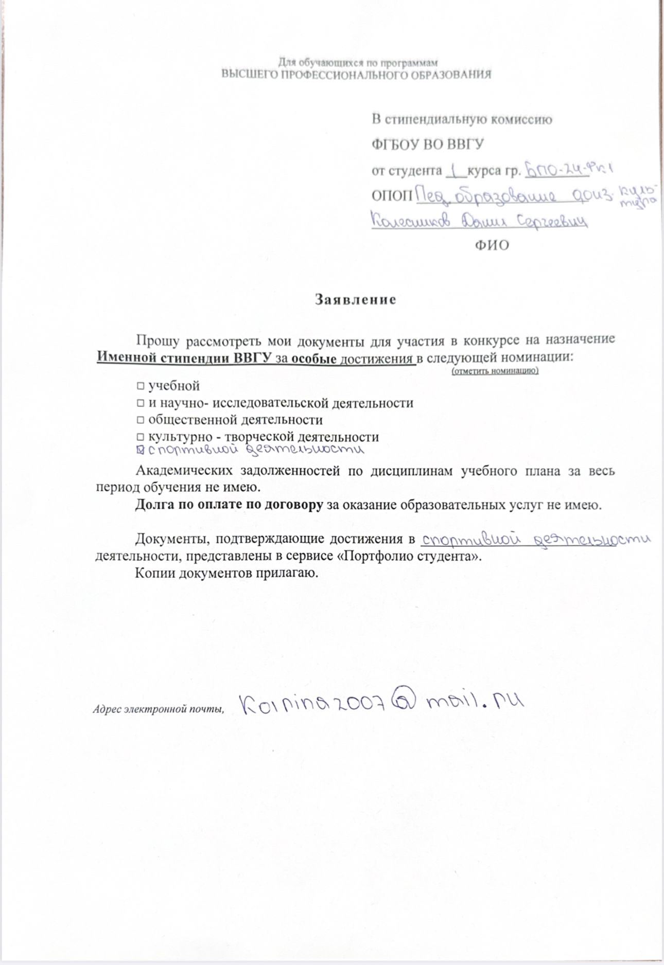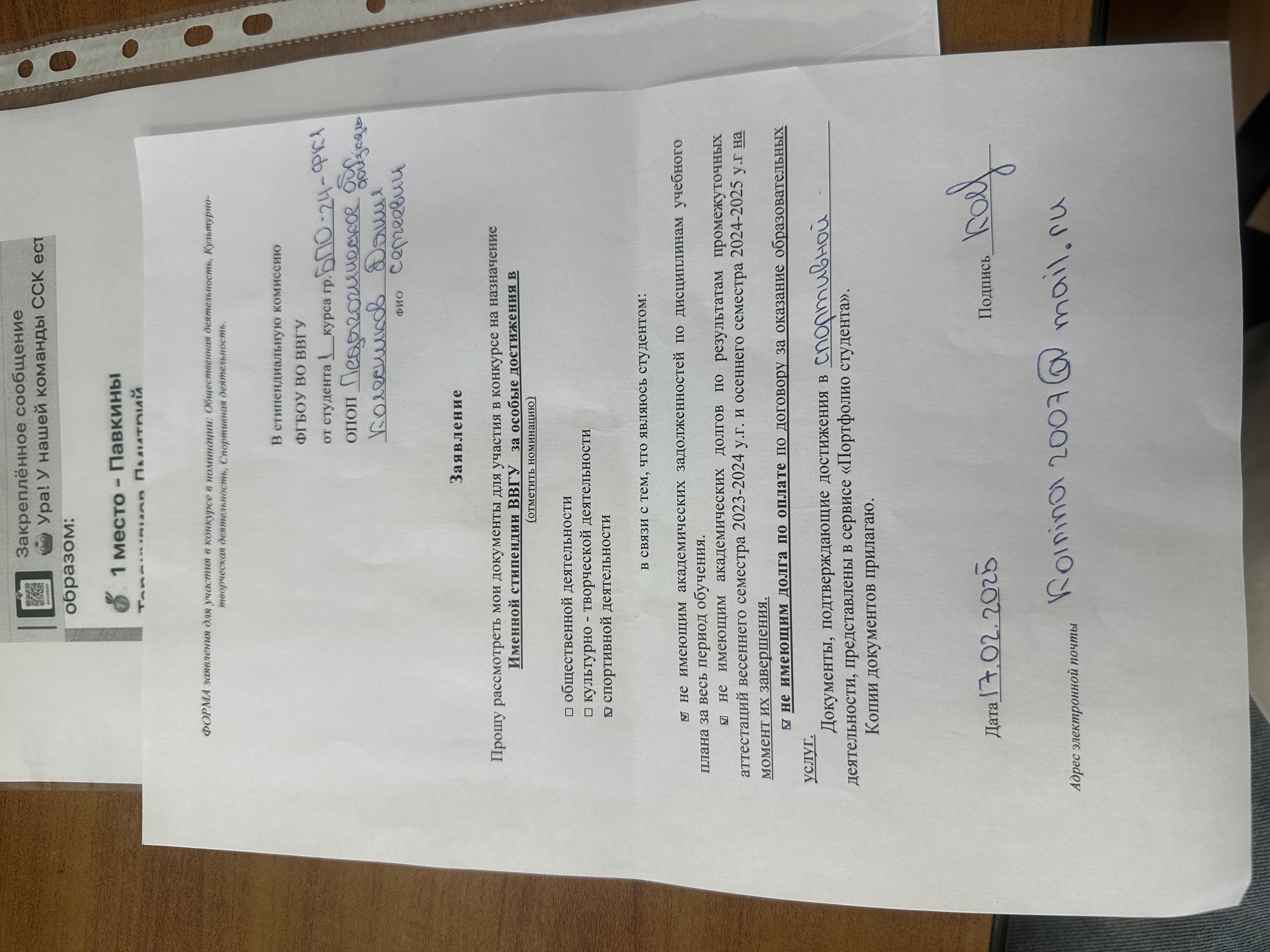 Конкурс на назначение Повышенной государственной академической стипендии и Именной стипендии ВВГУ за особые достижения