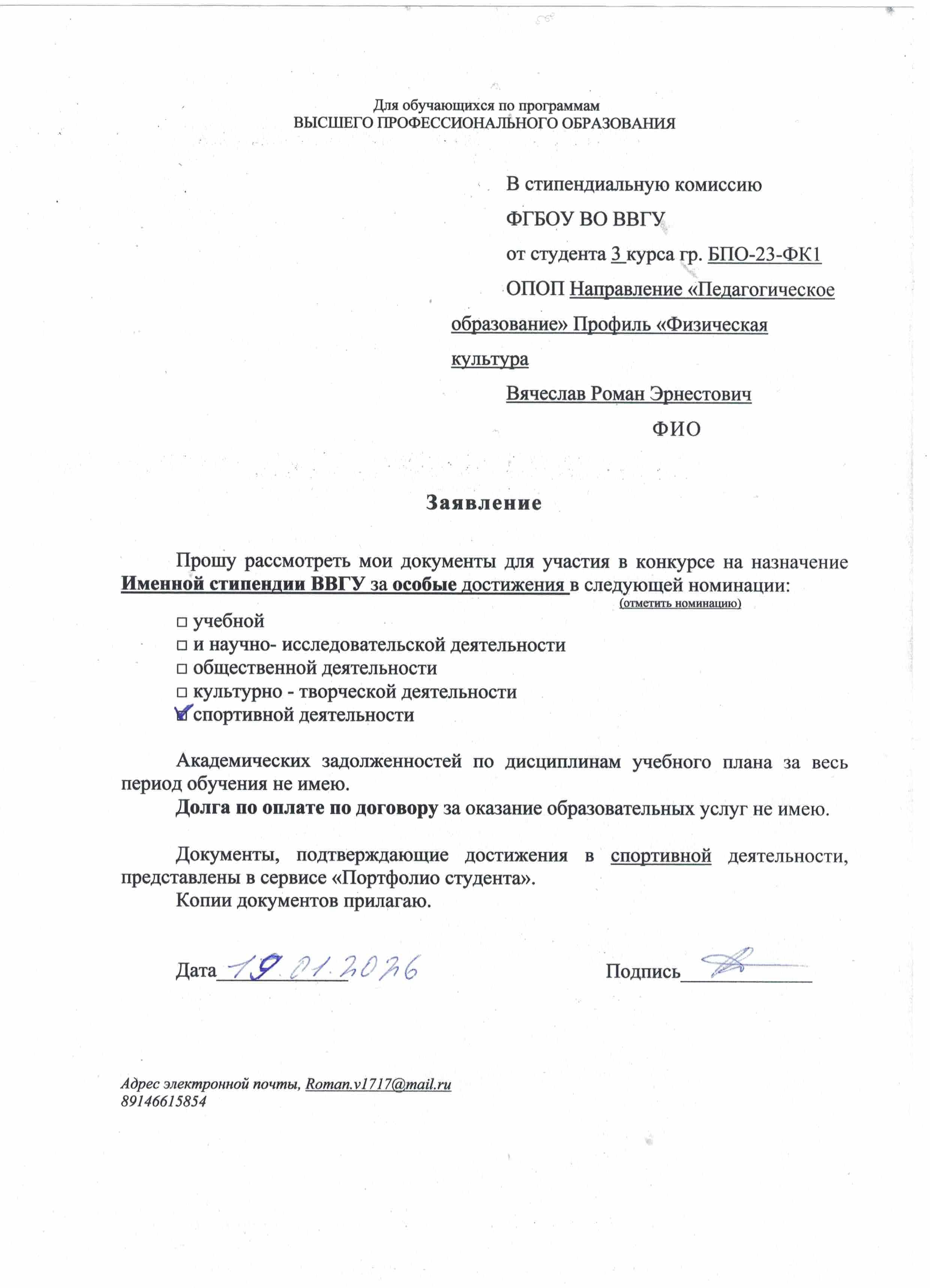 Конкурс на назначение Повышенной государственной академической стипендии и Именной стипендии ВВГУ за особые достижения