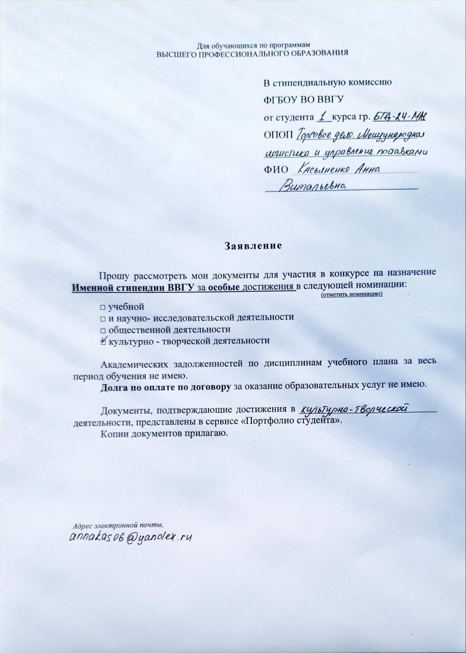 Конкурс на назначение Повышенной государственной академической стипендии и Именной стипендии ВВГУ за особые достижения