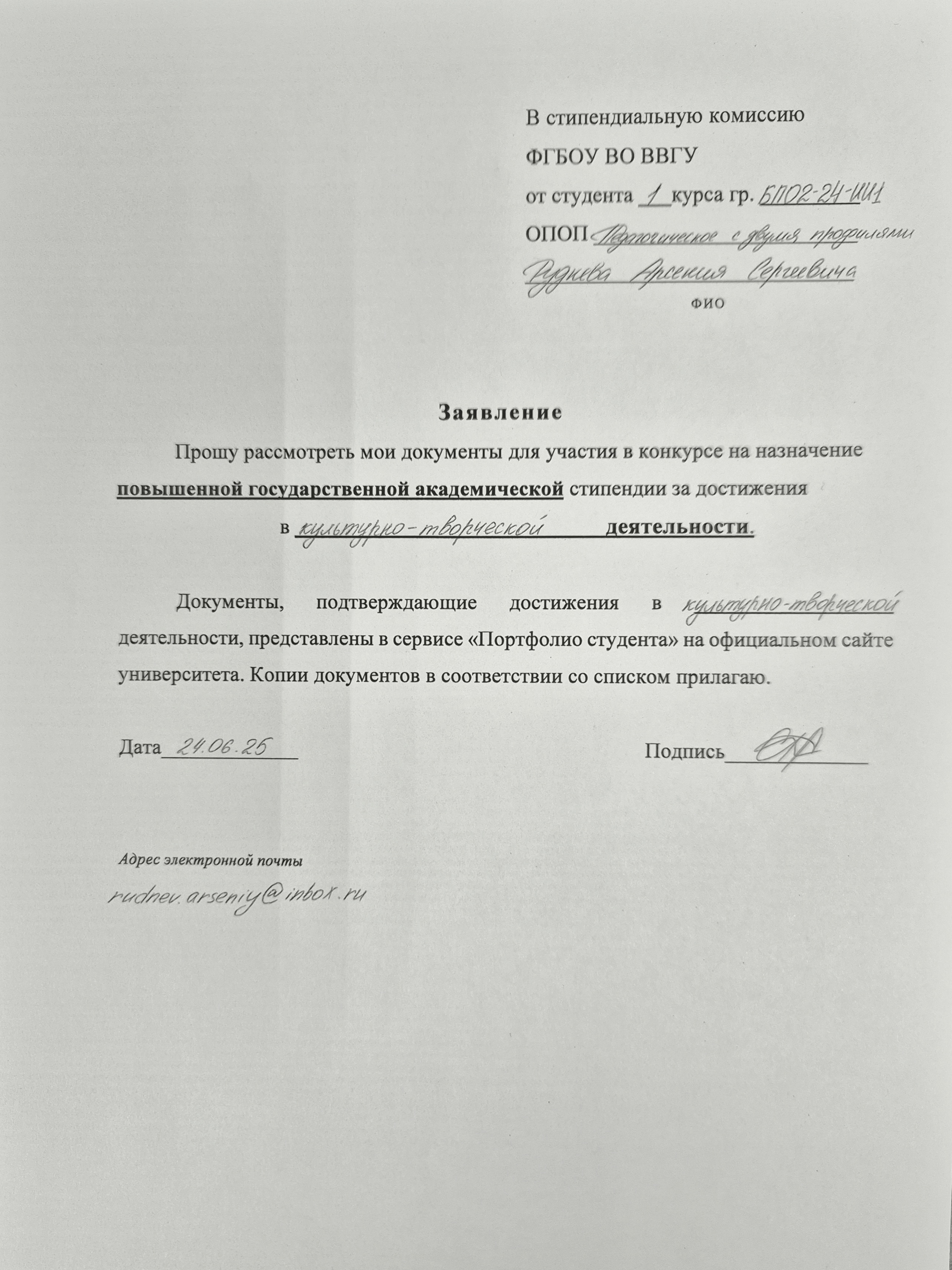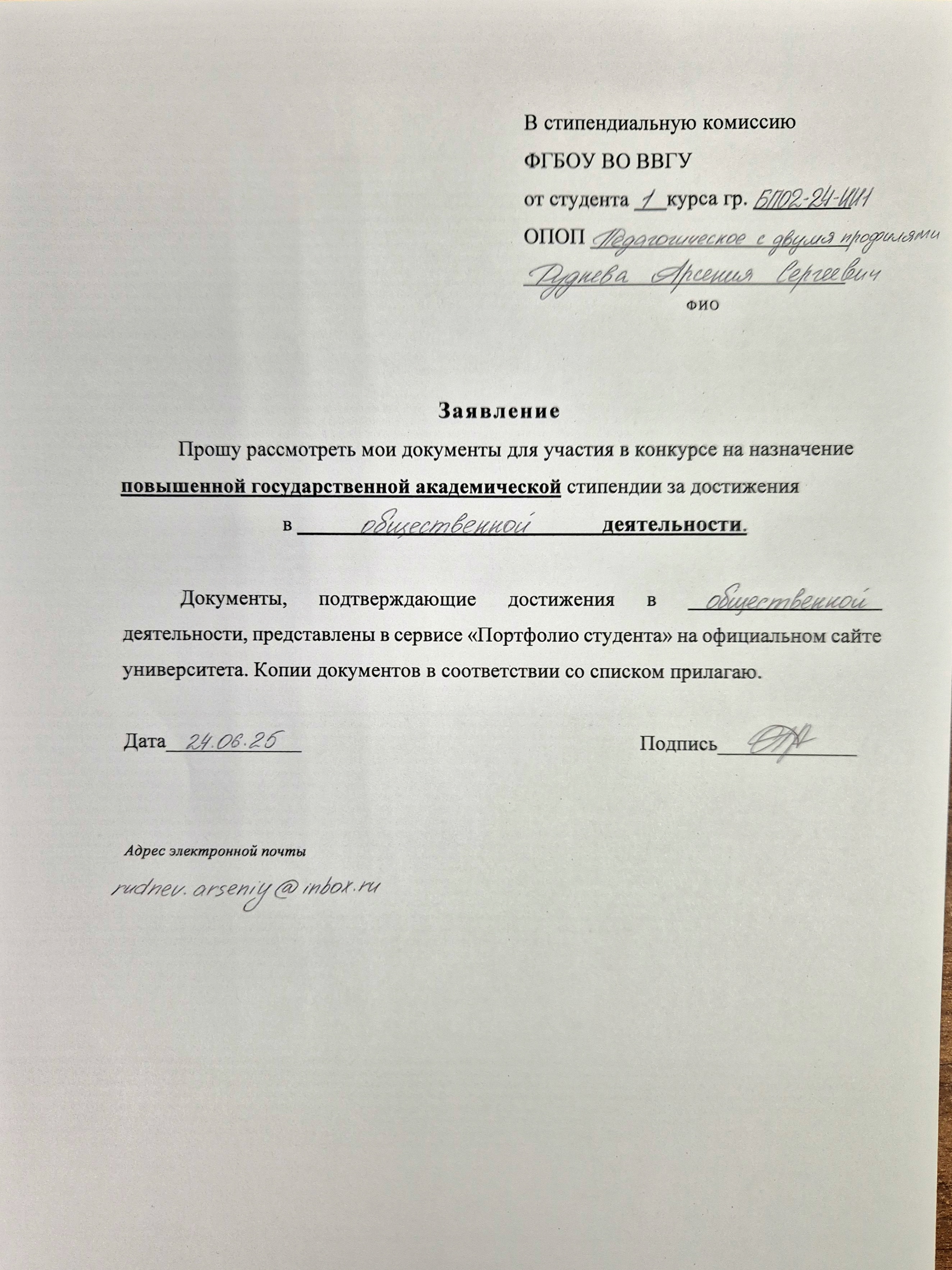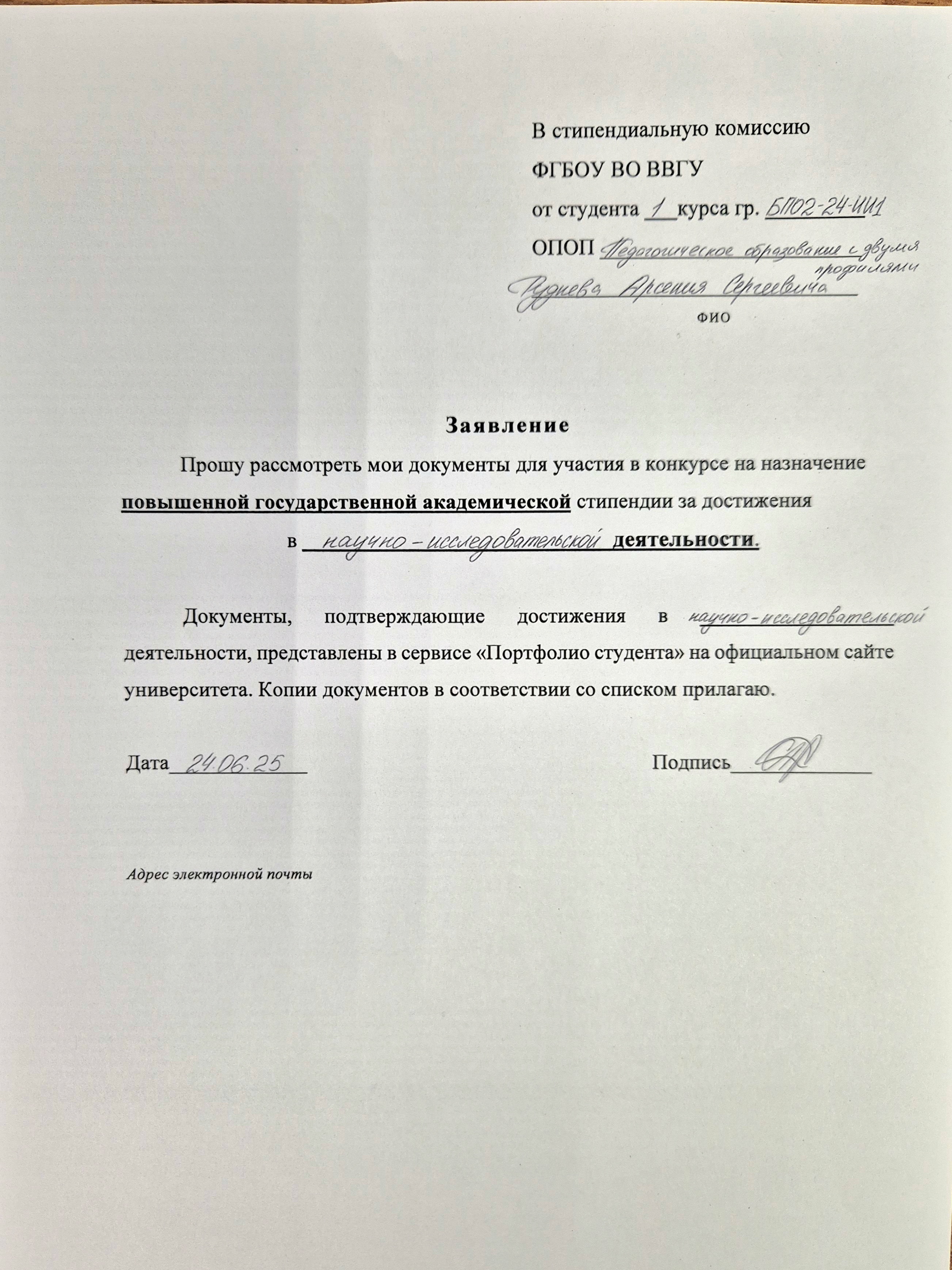 Конкурс на назначение Повышенной государственной академической стипендии и Именной стипендии ВВГУ за особые достижения