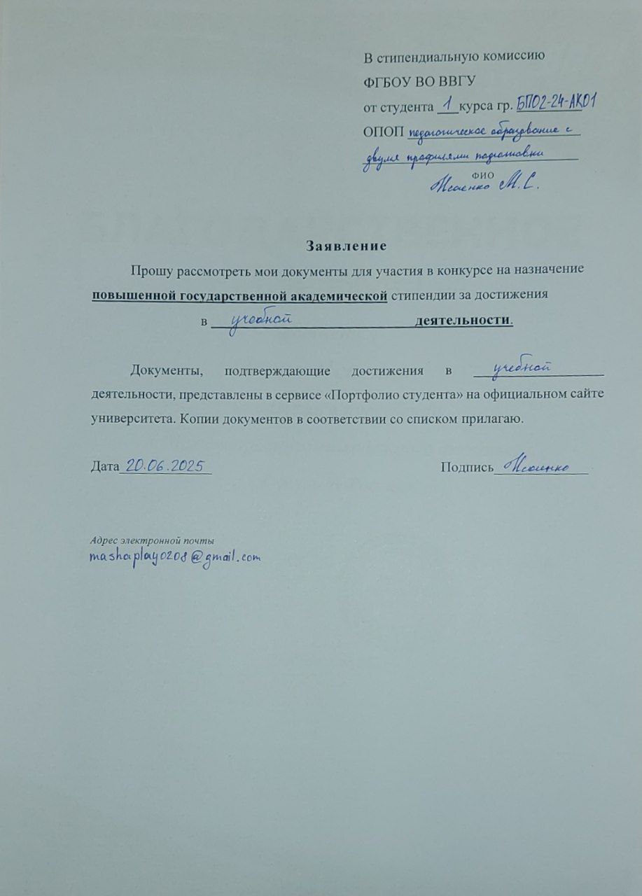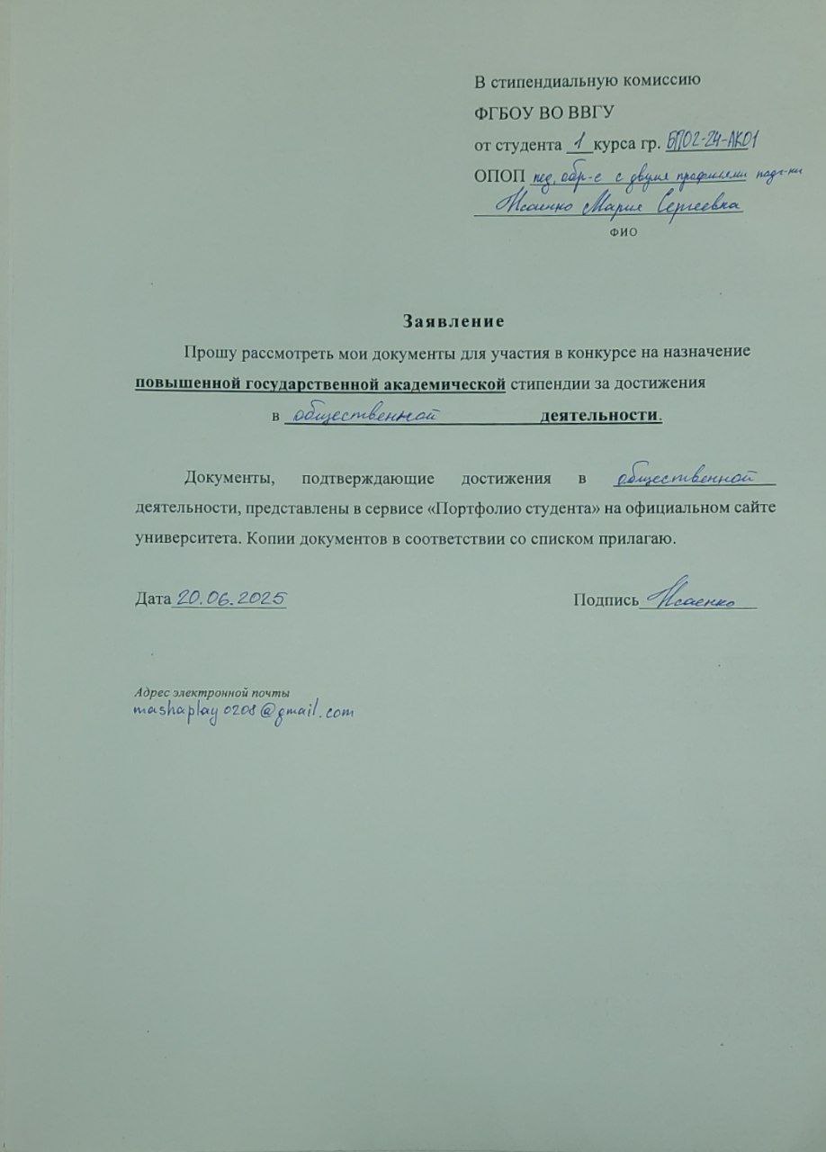 Конкурс на назначение Повышенной государственной академической стипендии и Именной стипендии ВВГУ за особые достижения