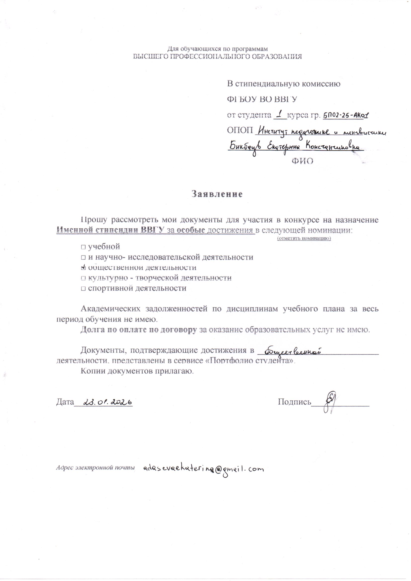 Конкурс на назначение Повышенной государственной академической стипендии и Именной стипендии ВВГУ за особые достижения