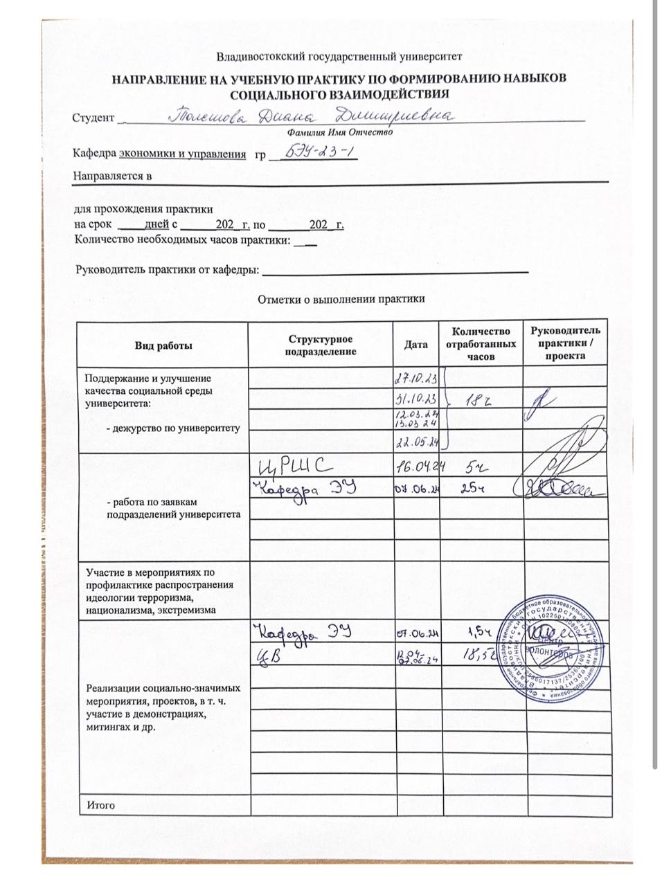 Учебная практика по формированию навыков социального взаимодействия | 2 |